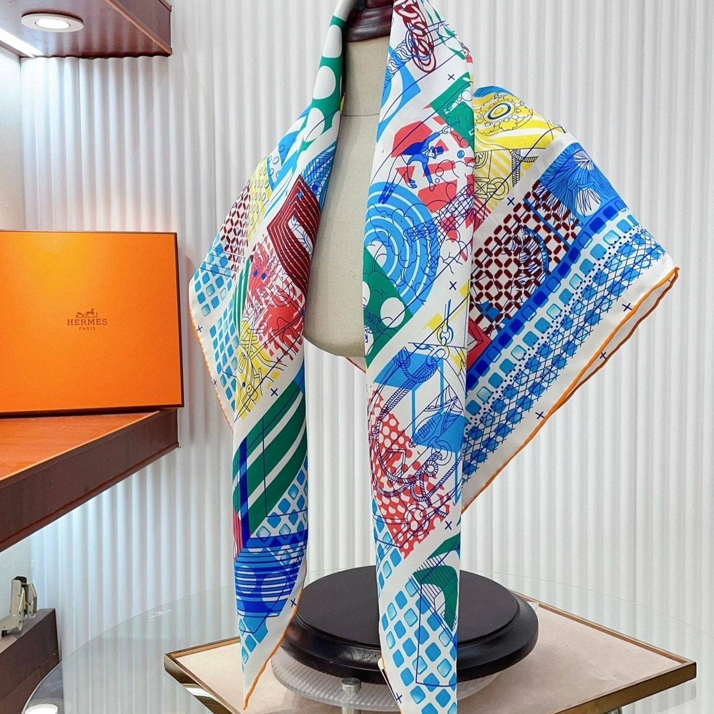 Stately Wheels Scarf 90 CM White Colorful Silk Twill 312874