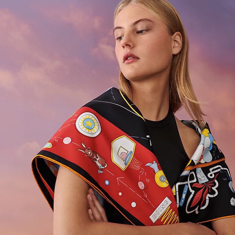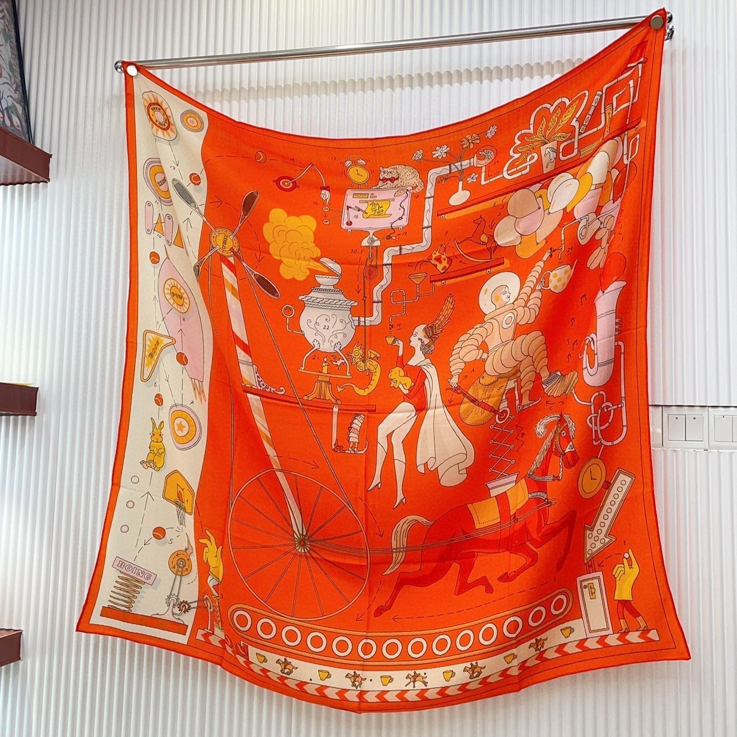 Stately Wheels Scarf 90 CM Red Colorful Silk Twill 312876
