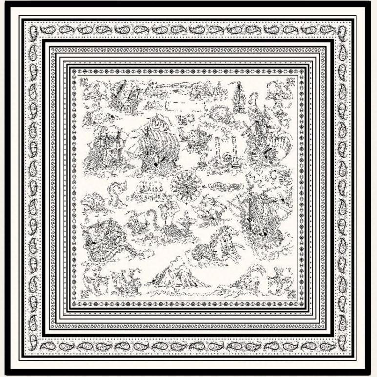 SQUARE SILK SCARF MALLES MERVEILLEUSES 90 CM BLACK MIX WHITE 399997