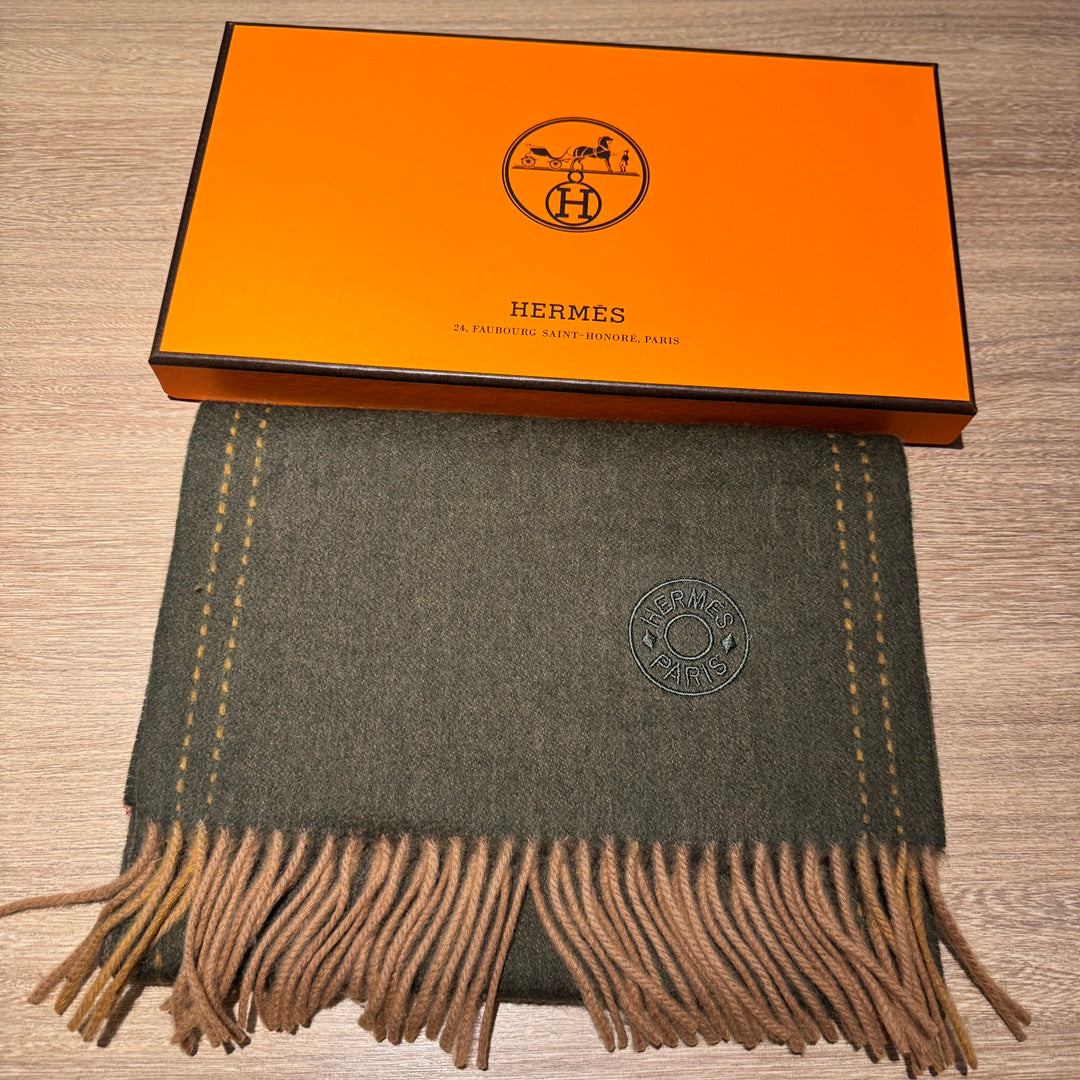 WIDE CHECK CASHMERE SCARF 200 CM IN CAMEL BROWN CASHMERE 407326