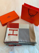 HM Drapeau Blanket Terracotta and Grey Wool Cashmere
