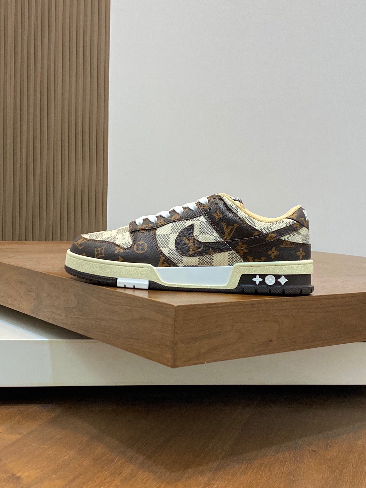 AIR TRAINER IN BROWN DAMIER CALFSKIN