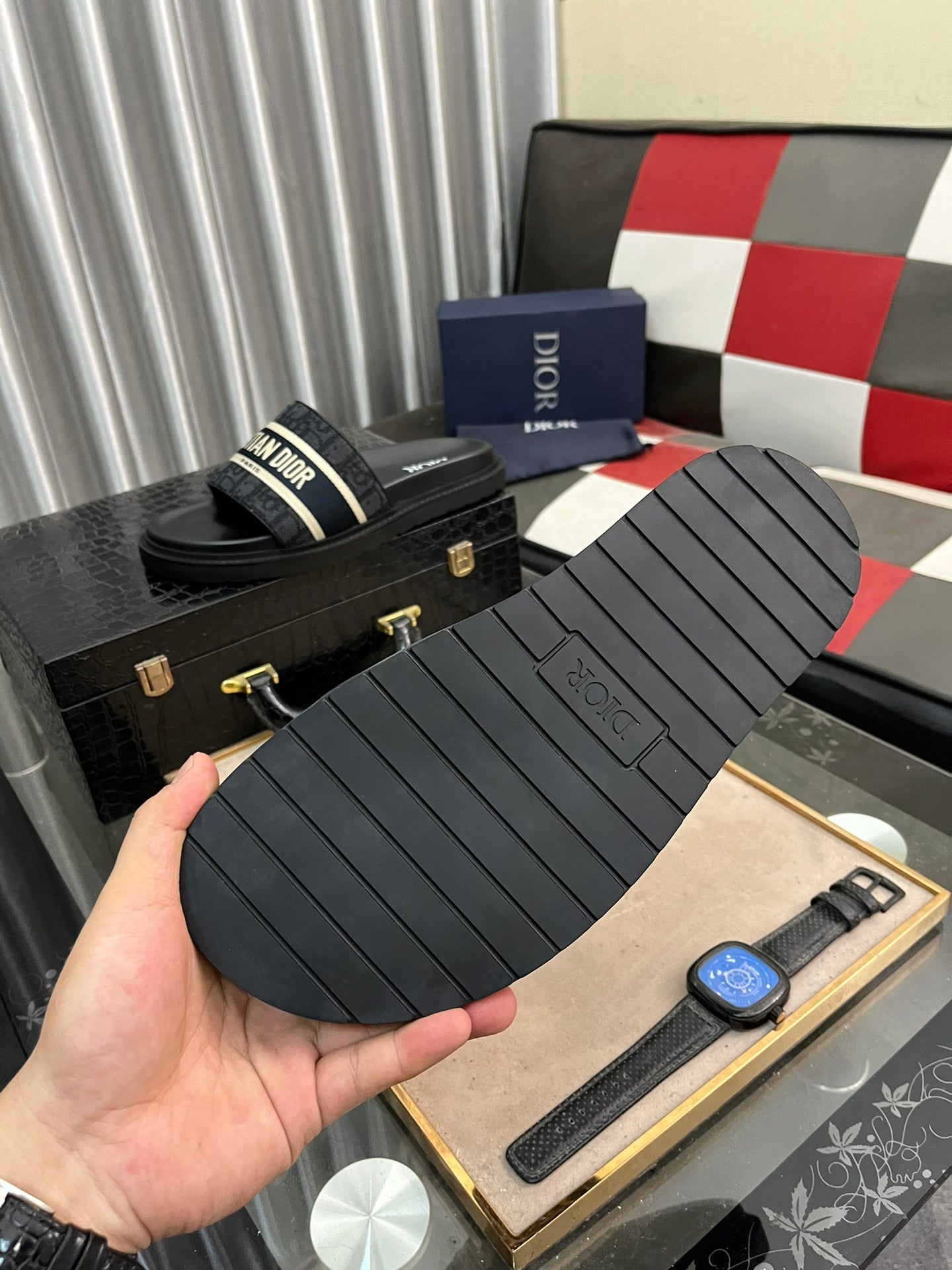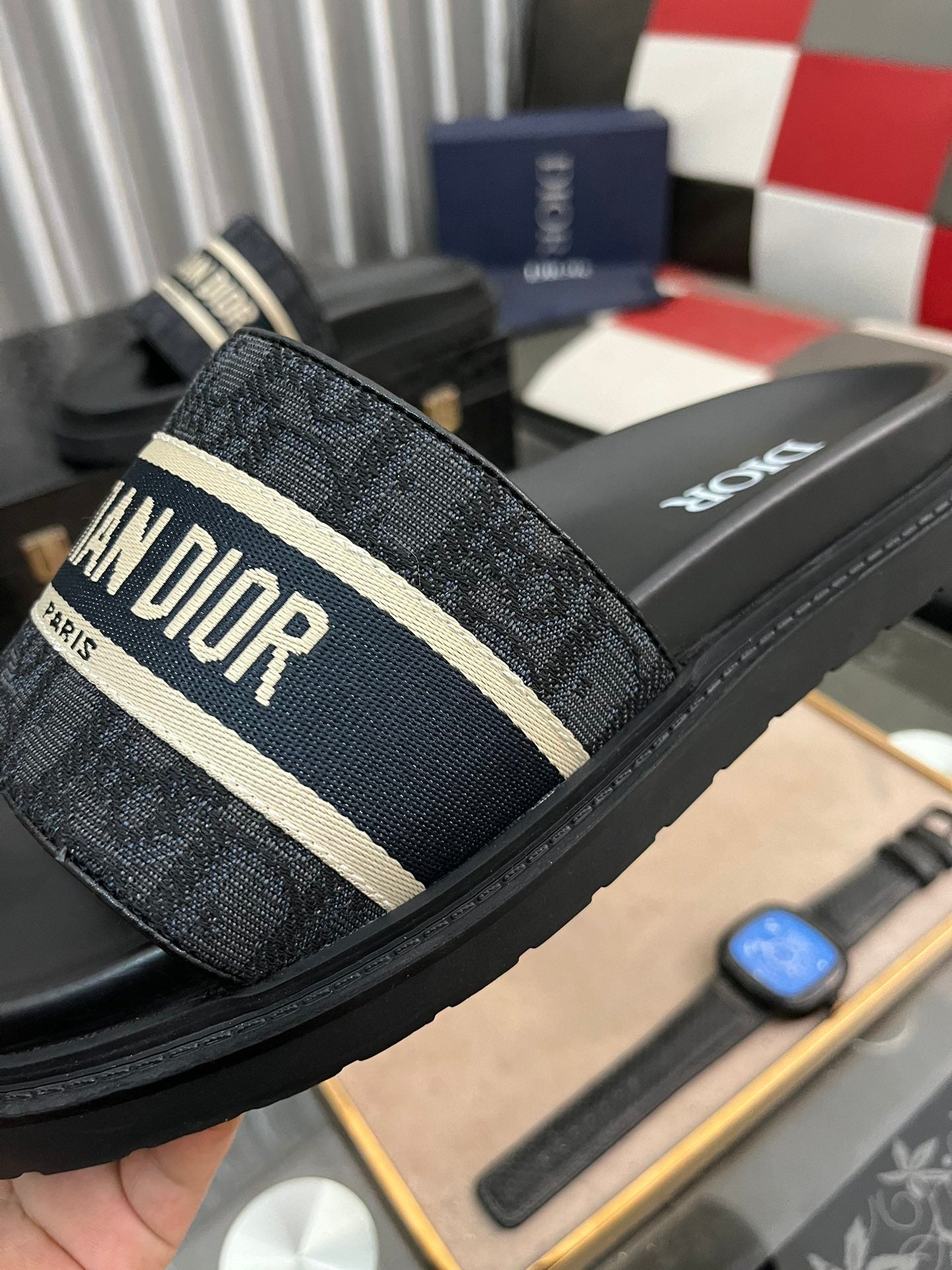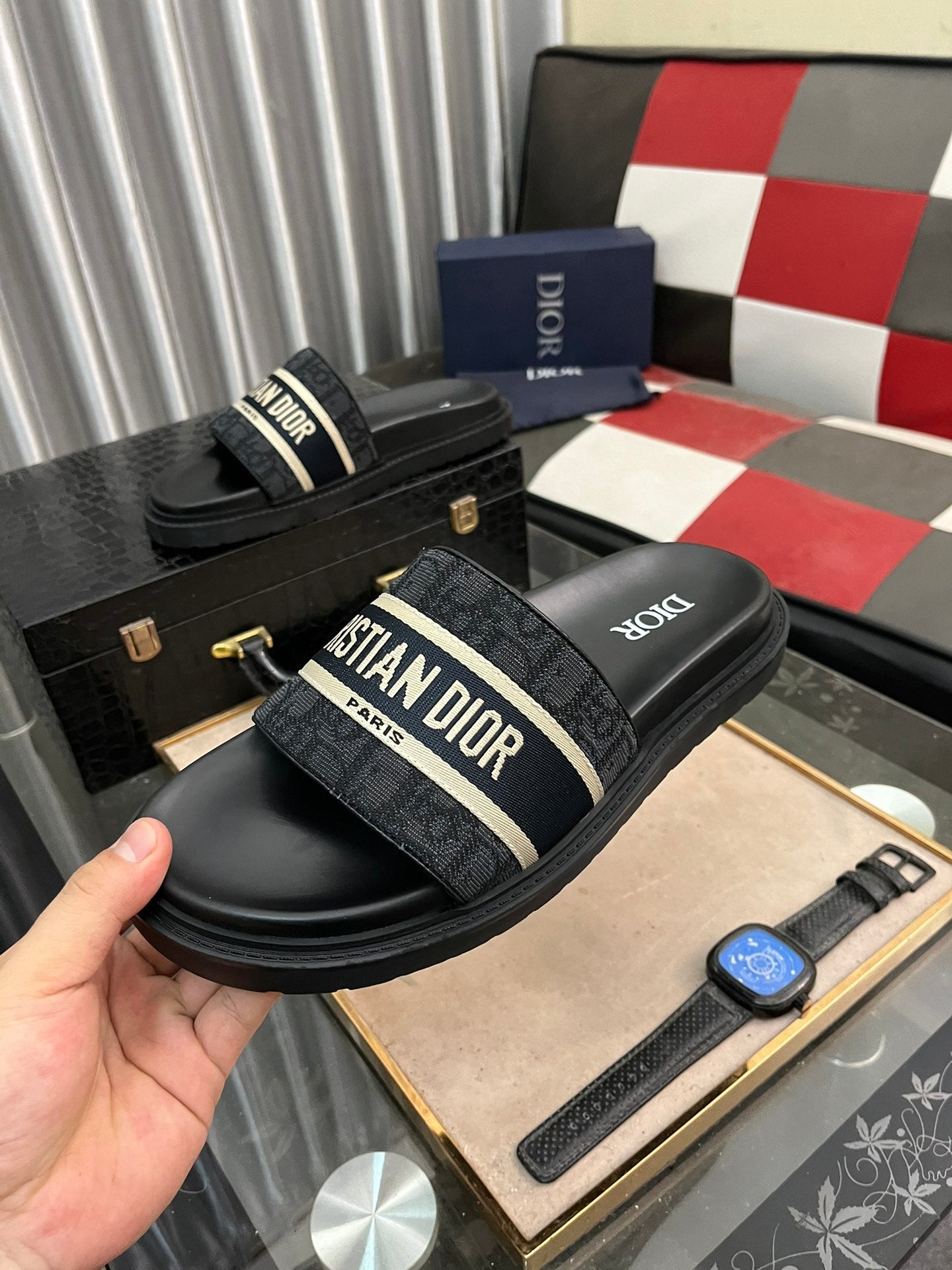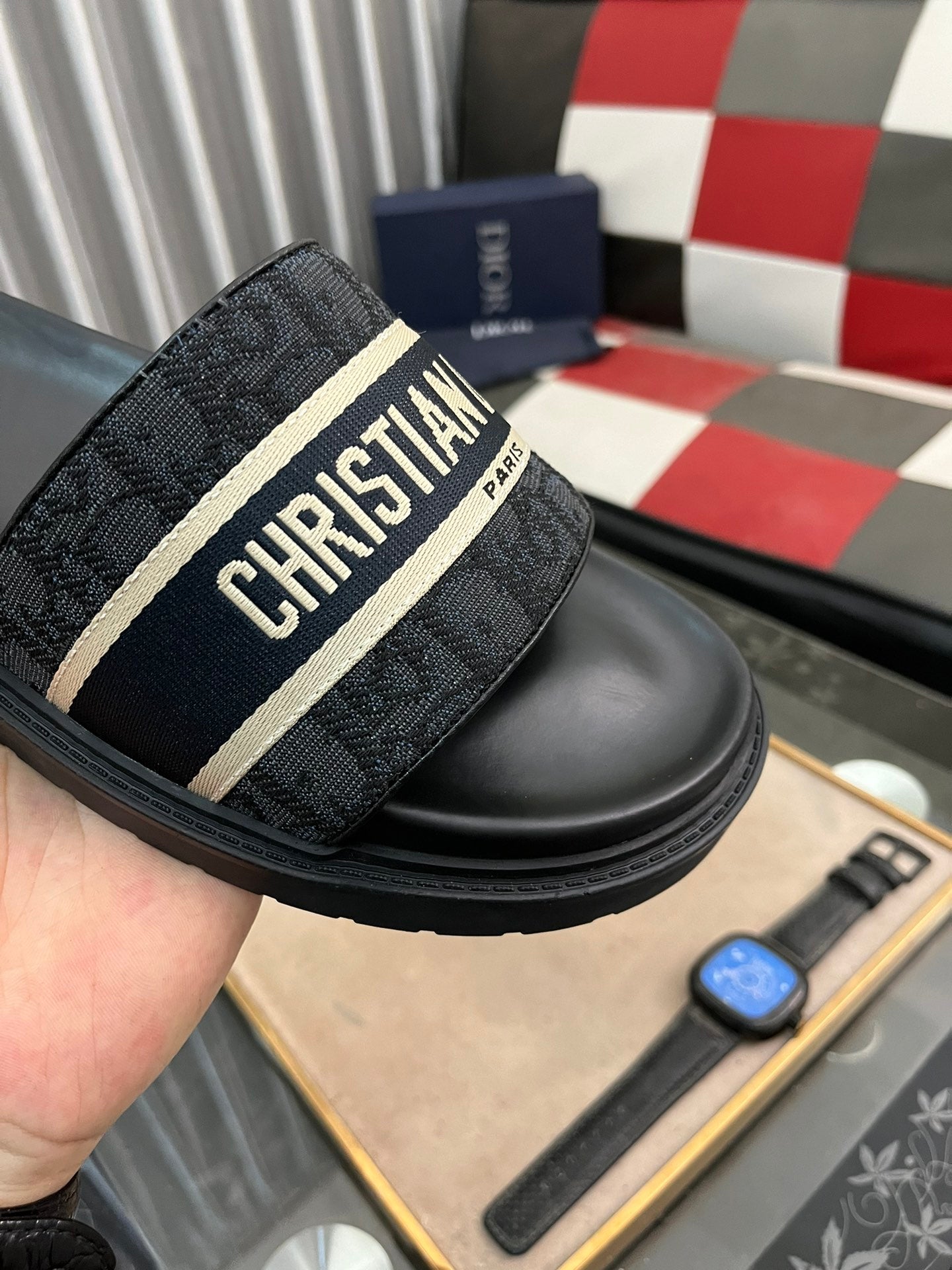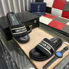 CD SLIDE LETTER SLIPPER BLACK CALFSKIN