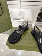 GC 25 Silver Double G Sandal Black Rubber 292433