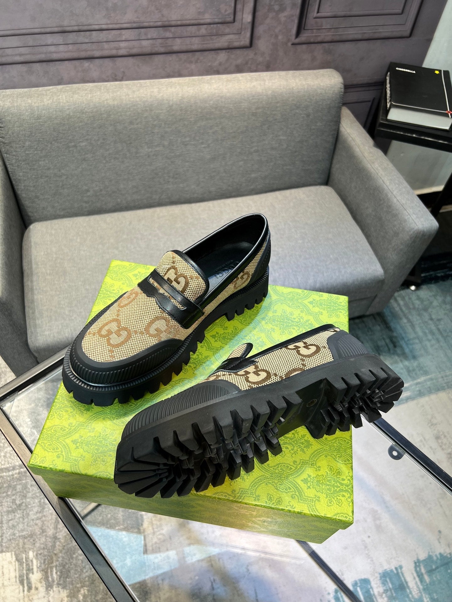 GG Men's 25 Maxi GG Loafer Brown Black Canvas 720786