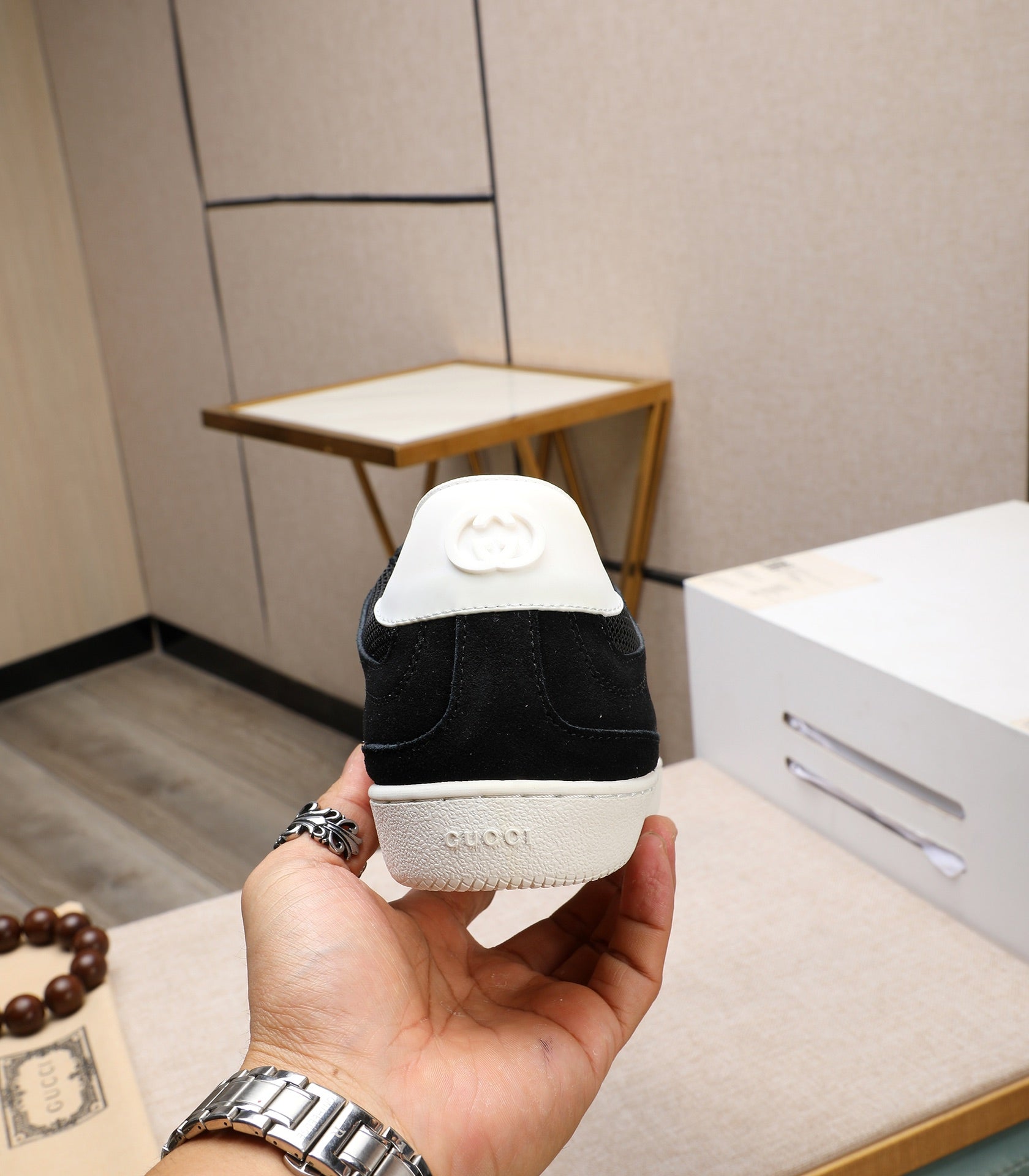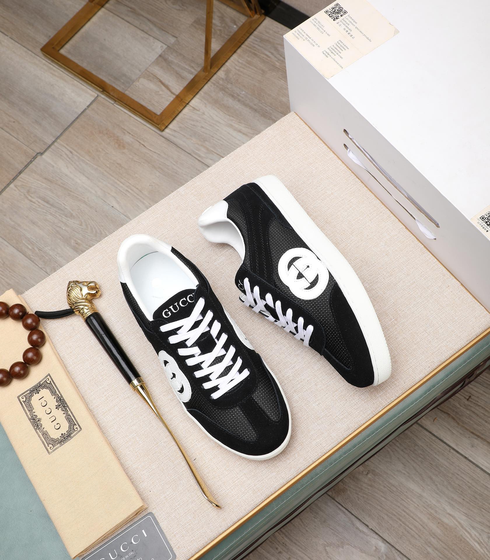GG Men's G75 Sneaker Black White Mesh Suede 477879