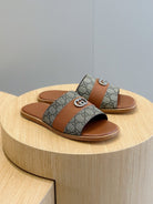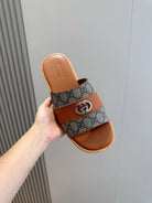 GG Men's Interlocking G Slides Brown Cowhide 547640