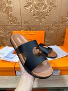 HM CIRCLE CUT SANDAL BLACK AND CARAMEL CALFSKIN