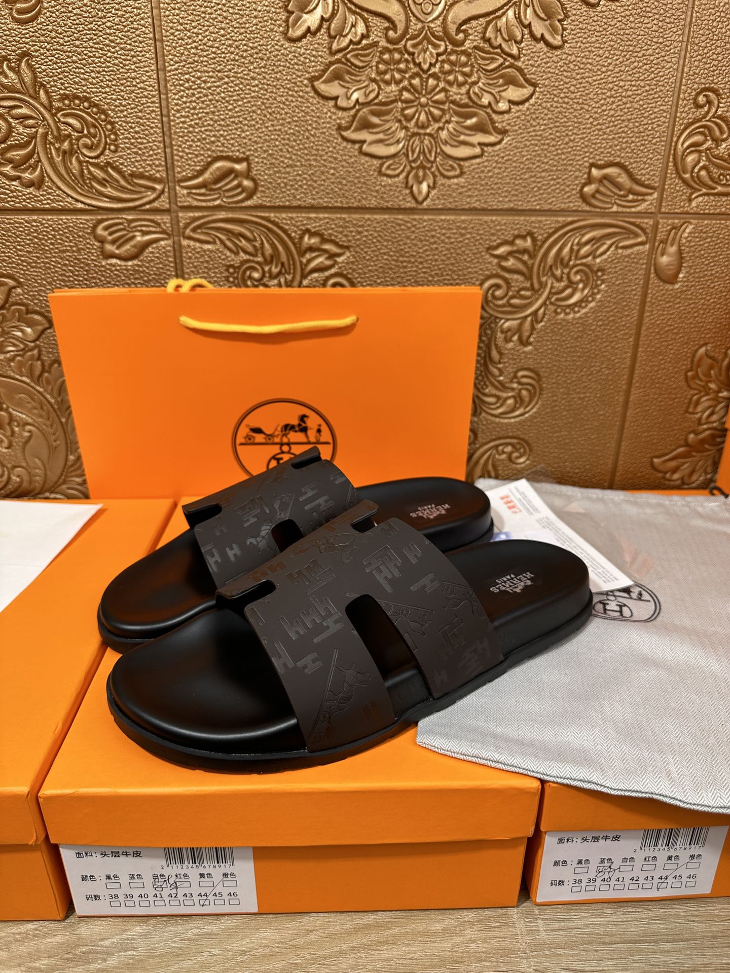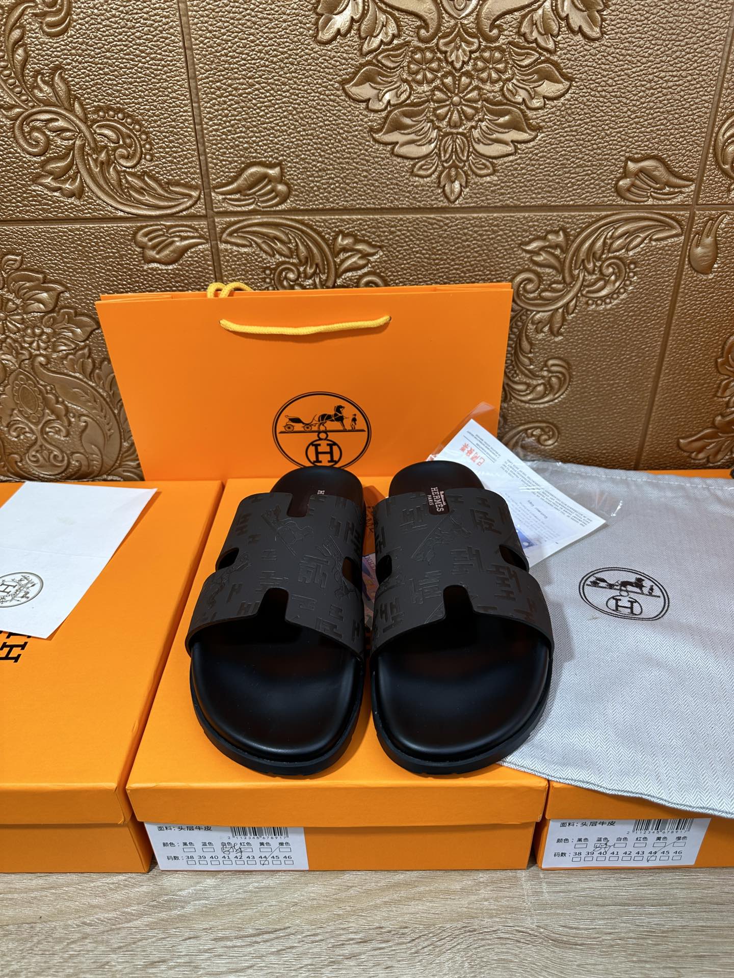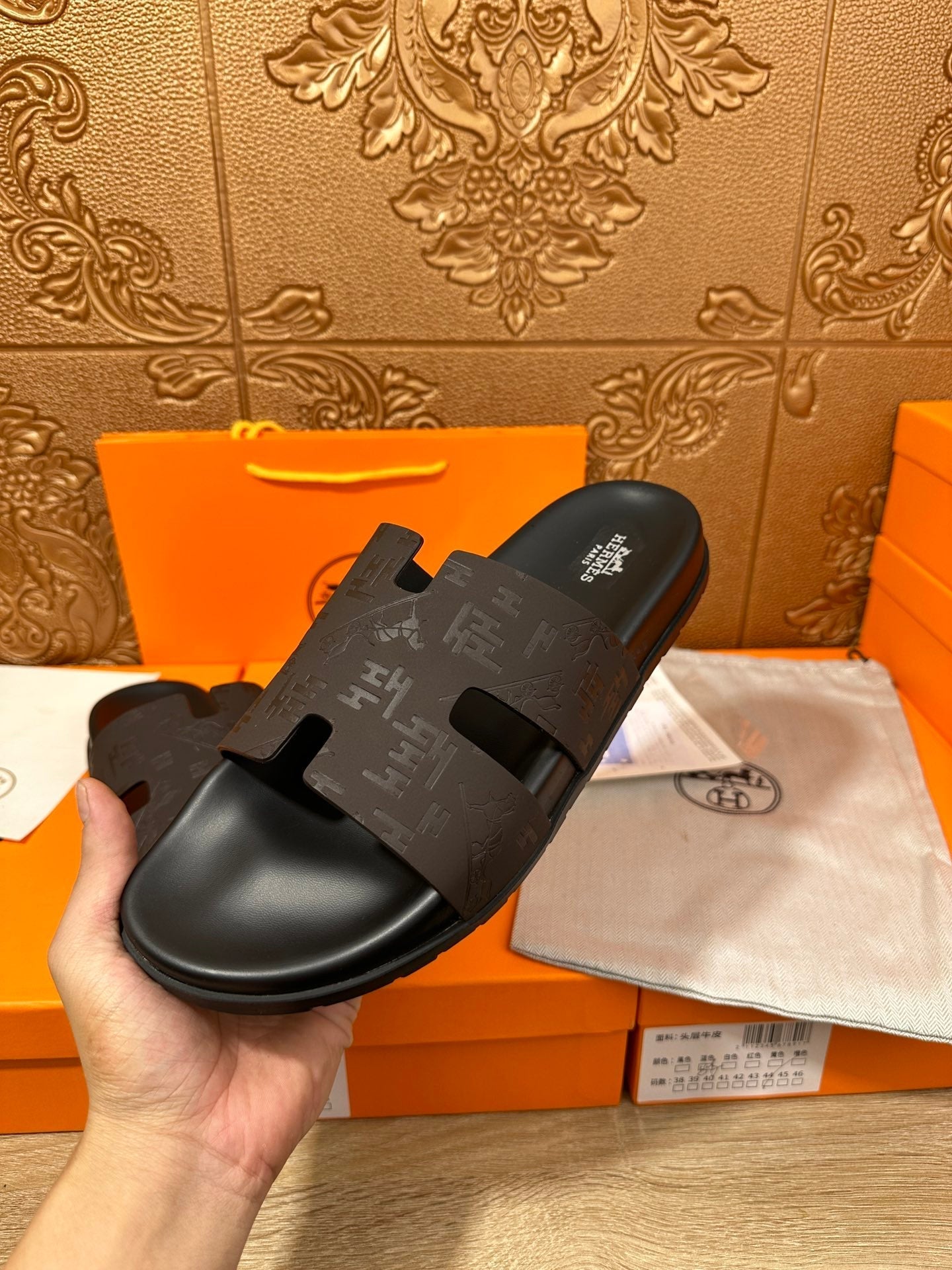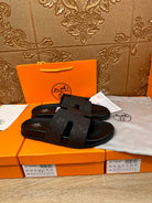 HM IZMIR SLIPPER BLACK AND DARK BROWN CALFSKIN