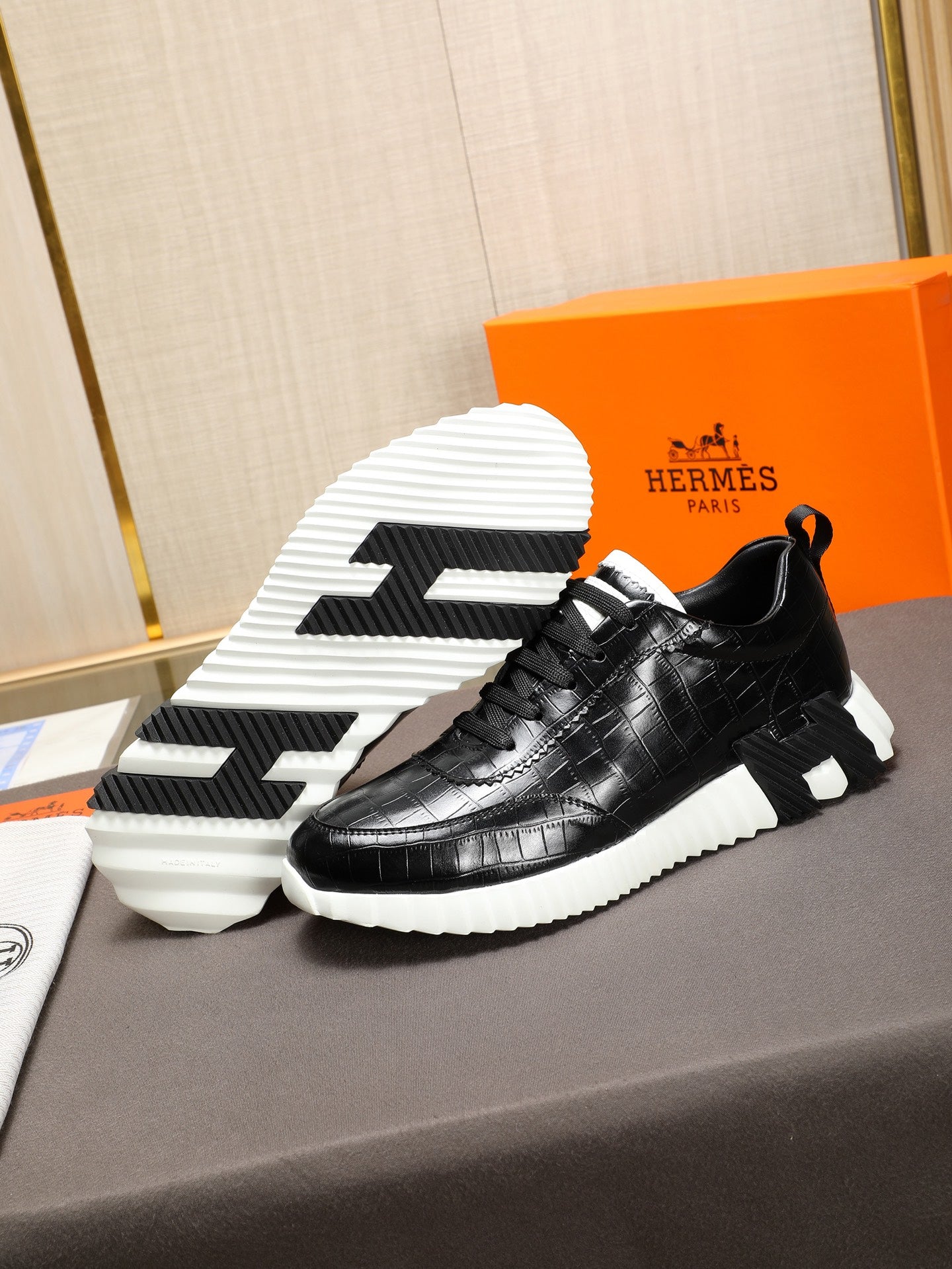 HM Men's Bouncing Sneaker Black Cowhide 664362