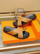 HM Men's Cross Strap Slide Orange Cowhide 544098