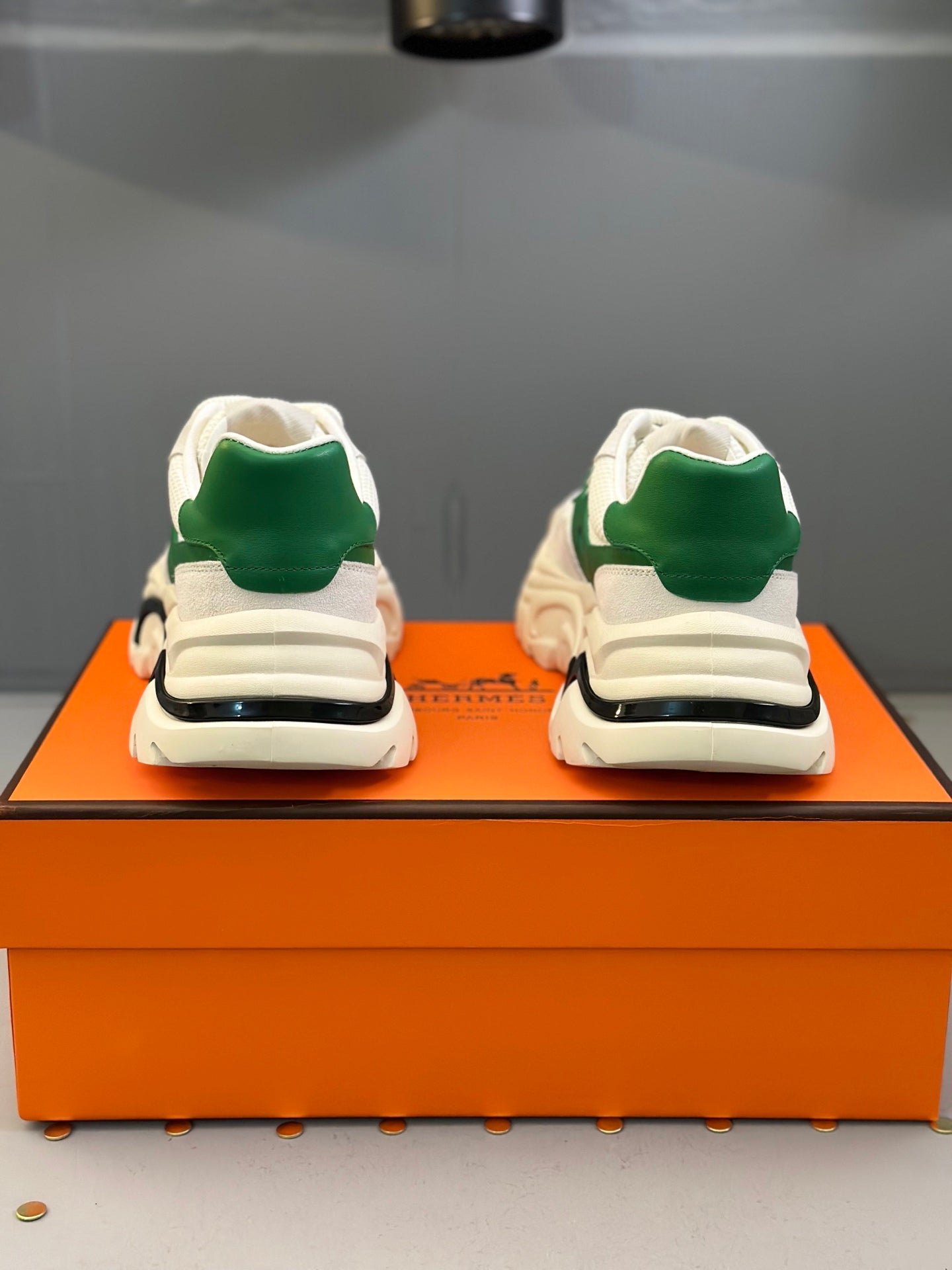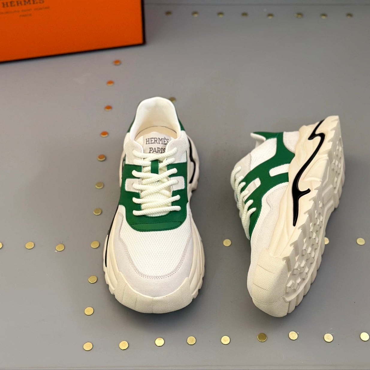 HM Men's Sneaker White Green Mesh Calfskin 541263
