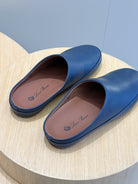 LP TOMORI SABOT MULES NAVY MESH CALFSKIN