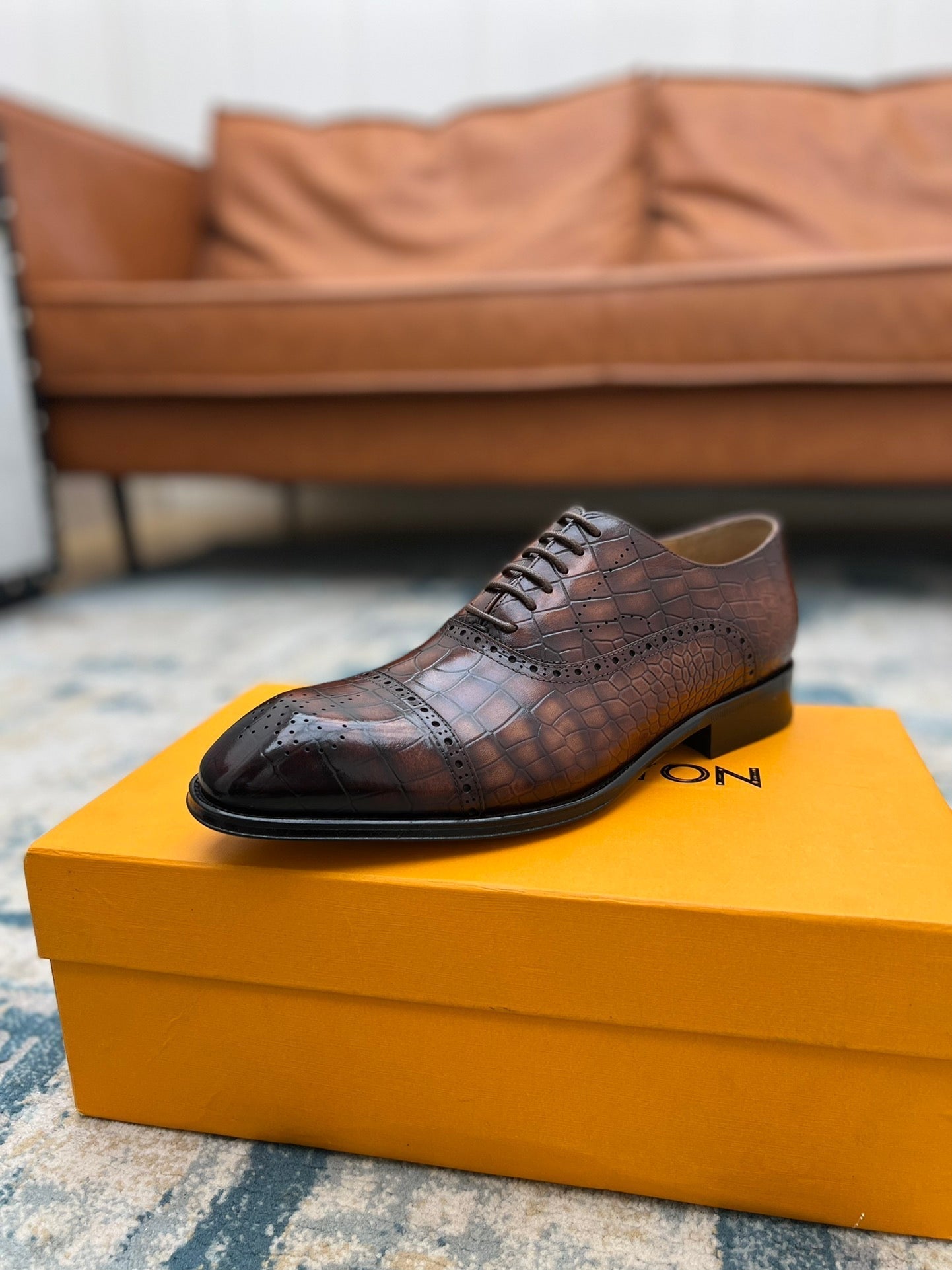 LV LACE-UP SHOES IN BROWN CROCODILE CALFSKIN