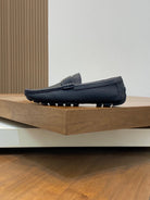 LV LOAFER IN BLACK WRINKLE CALFSKIN WITH SILVER LOGO