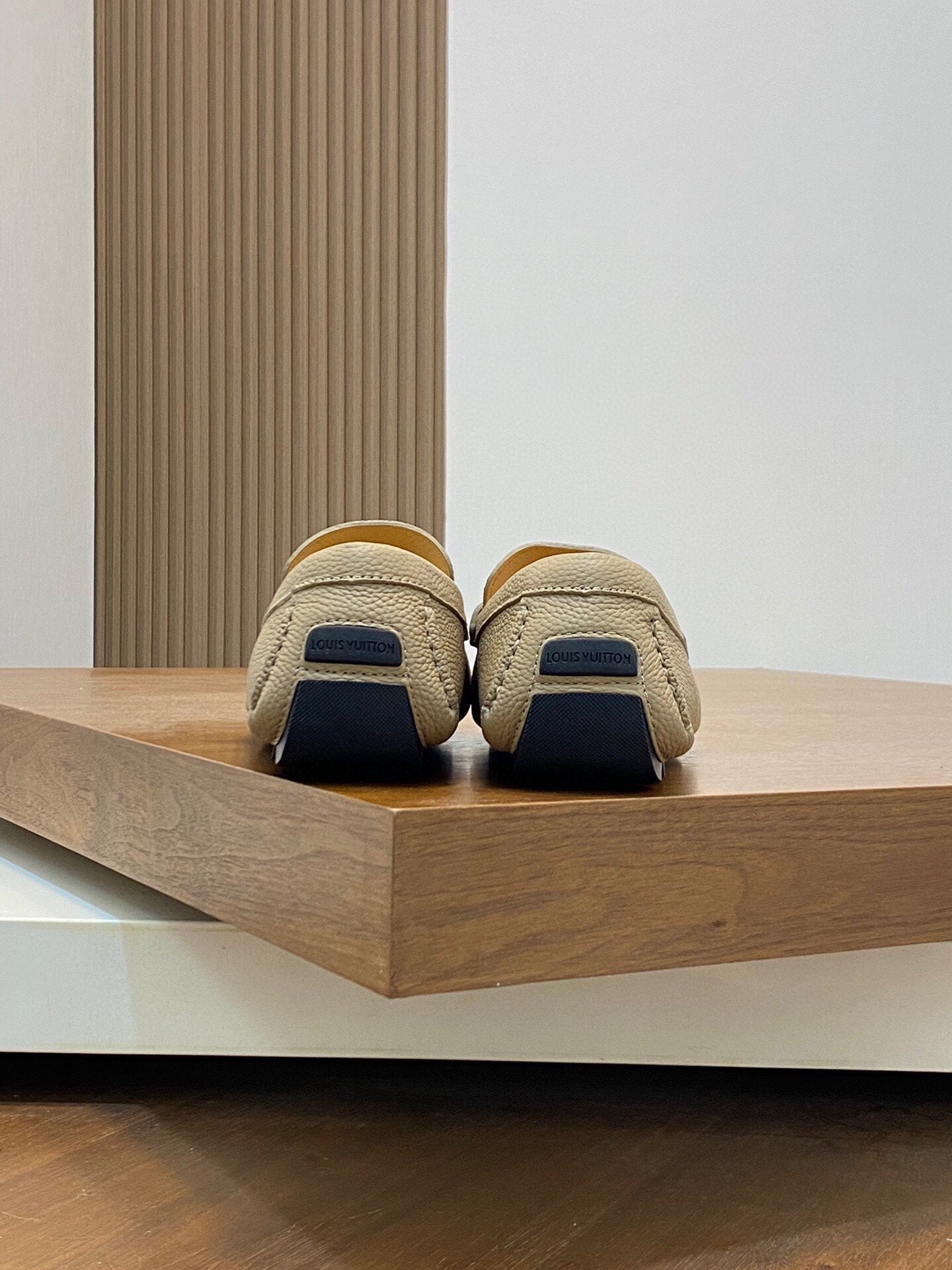 LV LOAFER IN DARK CREAM WRINKLE CALFSKIN WITH SILVER LOGO