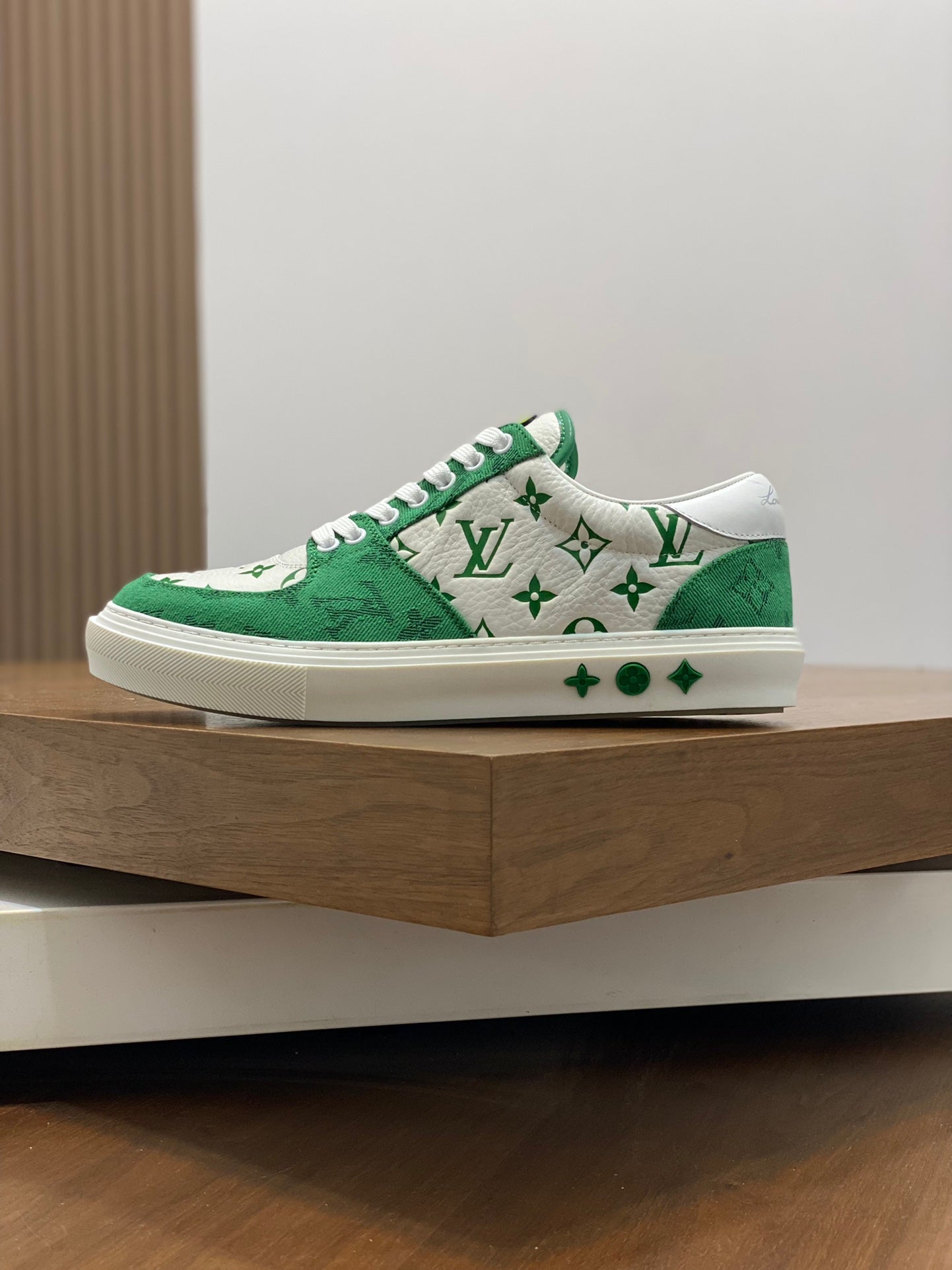 LV MONOGRAM GREEN AND WHITE SNEAKERS