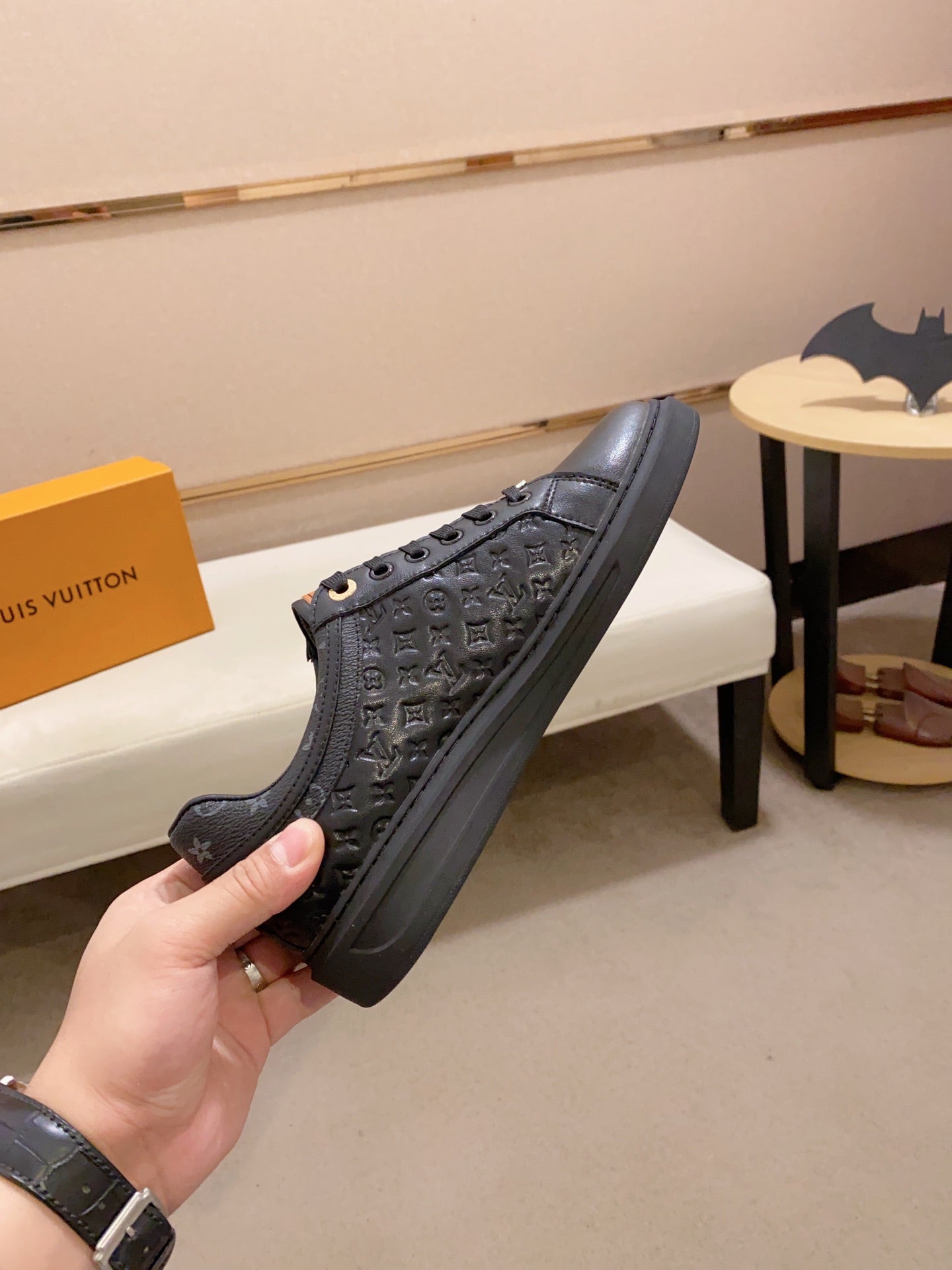 LV RIVOLI SNEAKER BLACK MINI MONOGRAM-EMBOSSED CALFSKIN