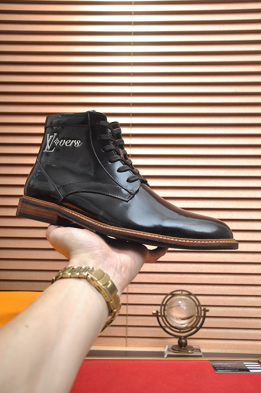 LV SHORT BOOT IN GLOSSY BLACK CALFSKIN
