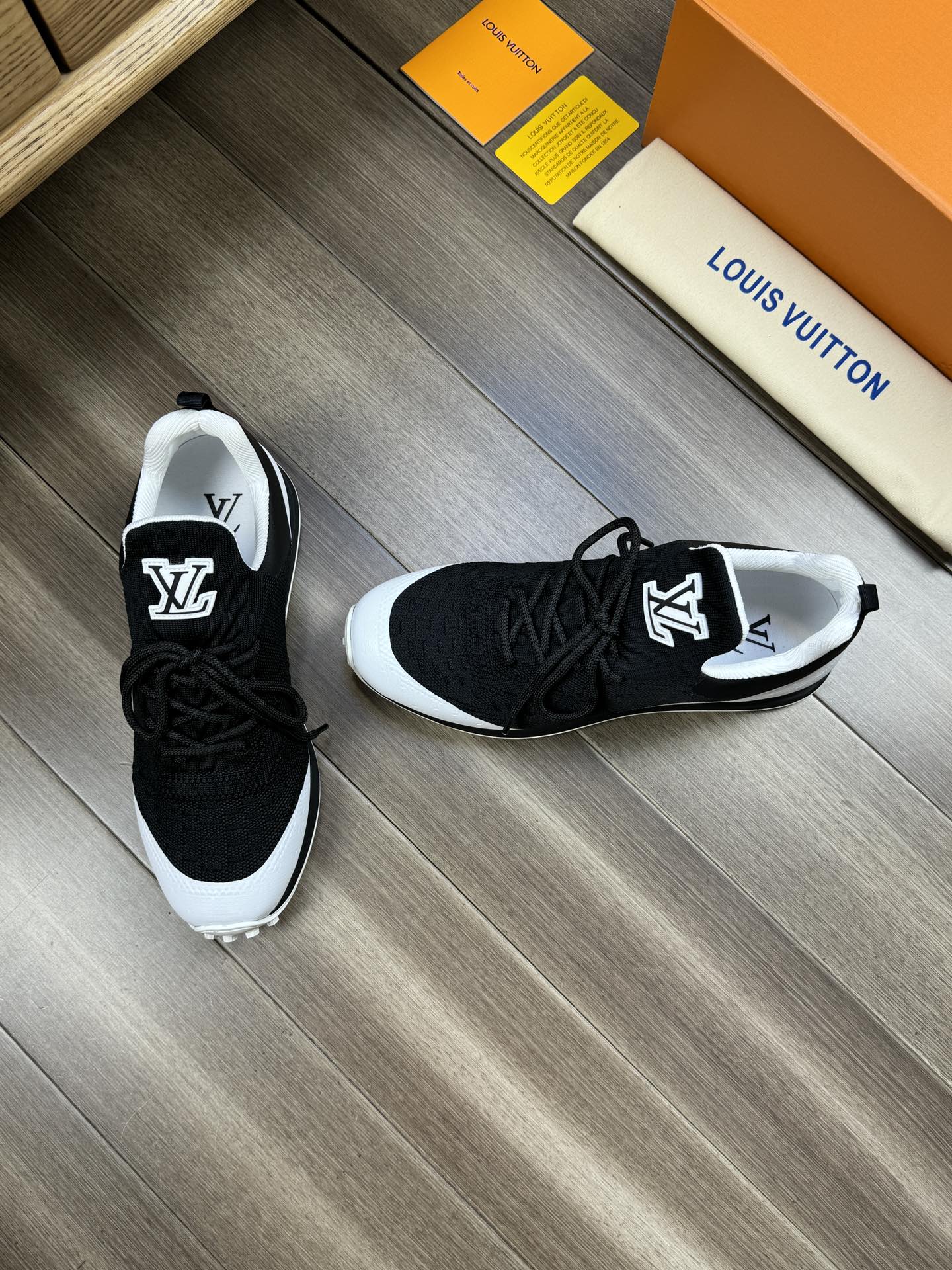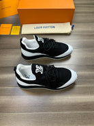 LV SNEAKERS IN BLACK MESH BREATHABLE FABRIC AND WHITE CALFSKIN