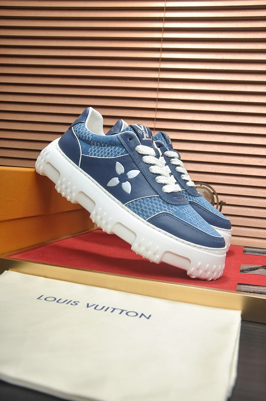 LV TRAINER BLUE COBALT CALFSKIN AND DENIM