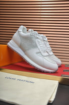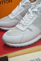 LV TRAINER SHOES IN WHITE MIX GREY EMBOSSED LAMBSKIN