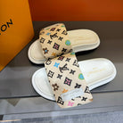 LV VELCRO SLIPPERS IN BEIGE CREAM MONOGRAM CALFSKIN