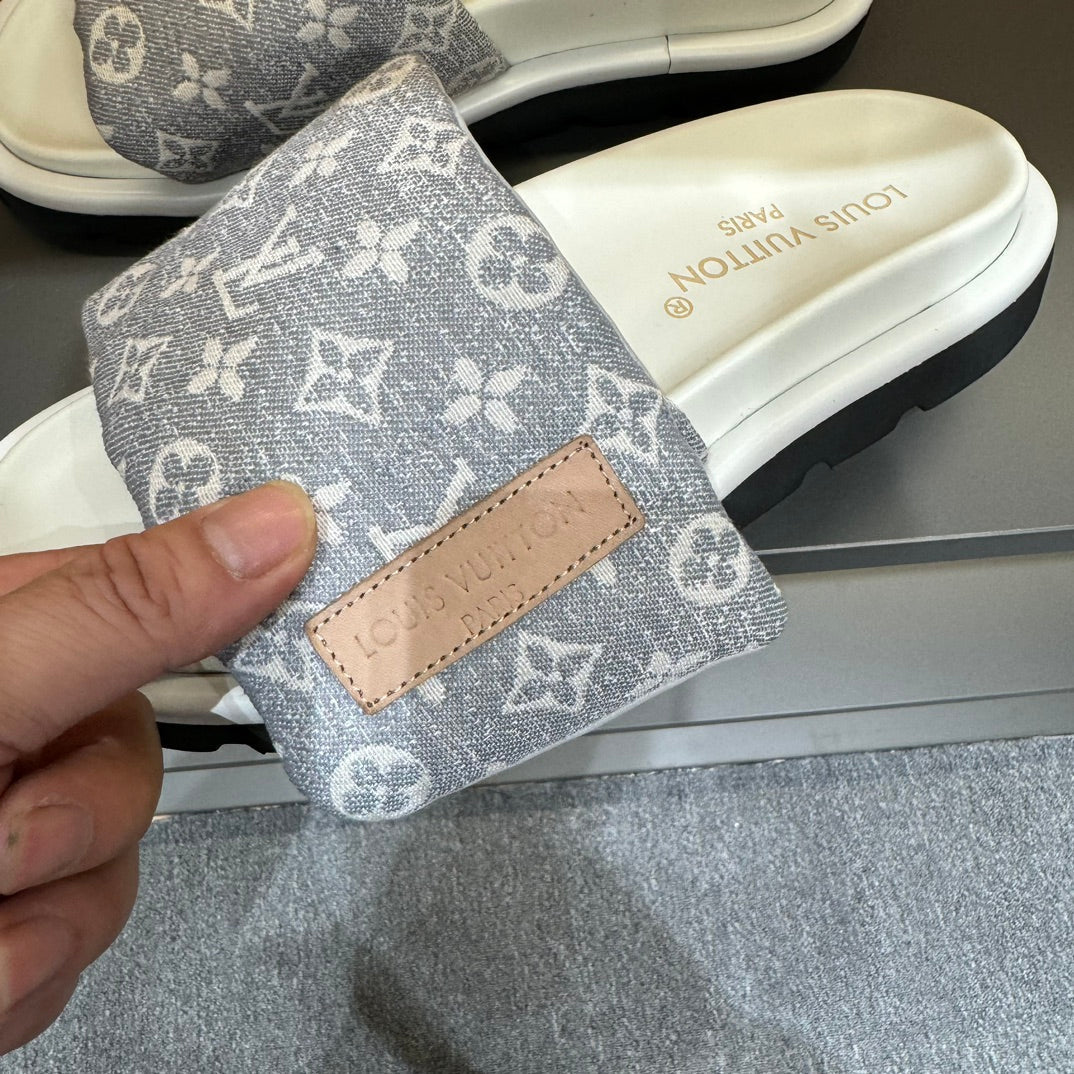 LV VELCRO SLIPPERS IN GREY MONOGRAM JACQUARD