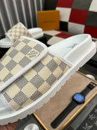 MIAMI MULE IN BEIGE CREAM DAMIER JACQUARD