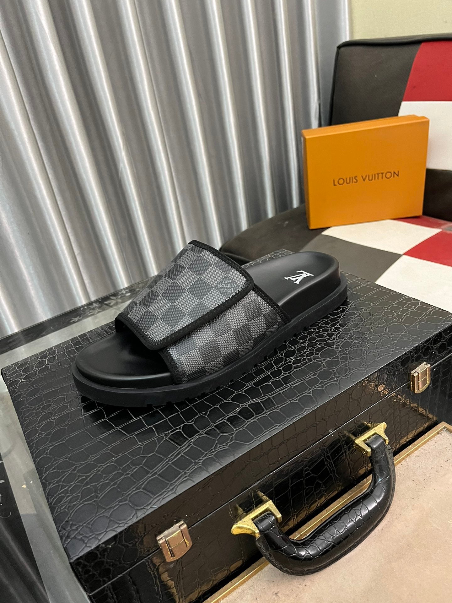 MIAMI MULE IN BLACK DAMIER JACQUARD