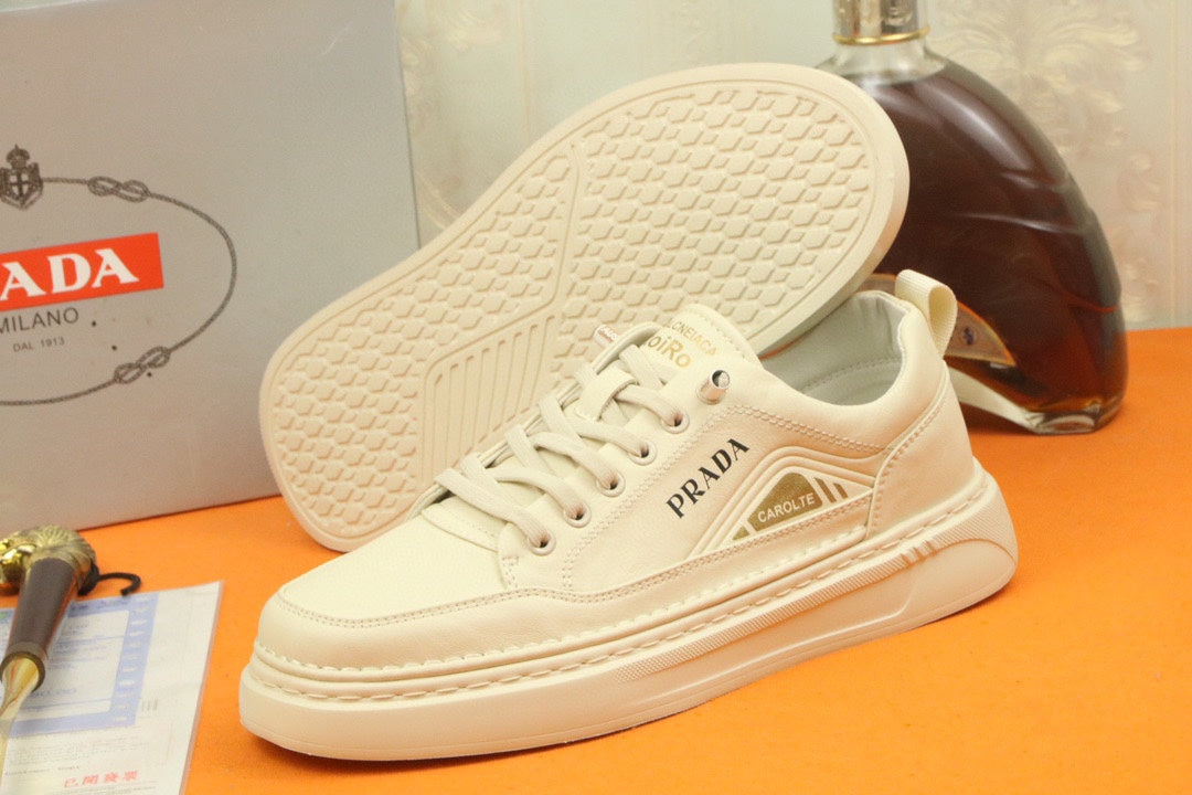 PRA SNEAKER IN BEIGE CALFSKIN AND FABRIC