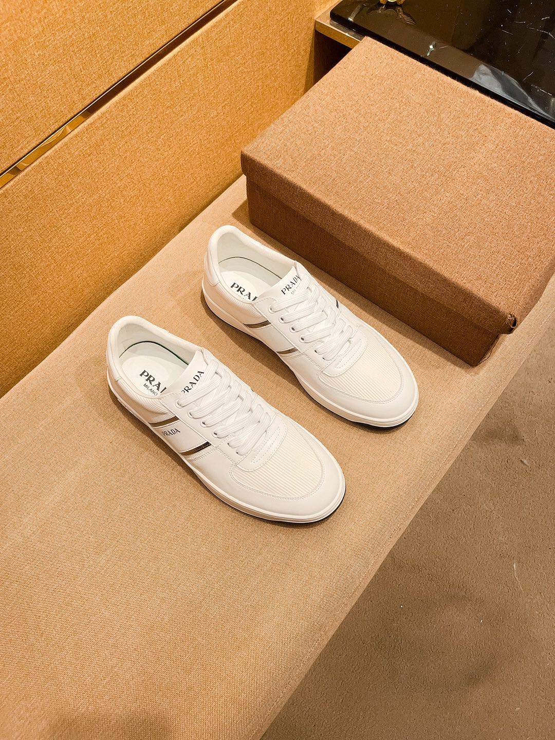 PRA SNEAKER IN WHITE CALFSKIN AND MESH BREATHABLE FABRIC