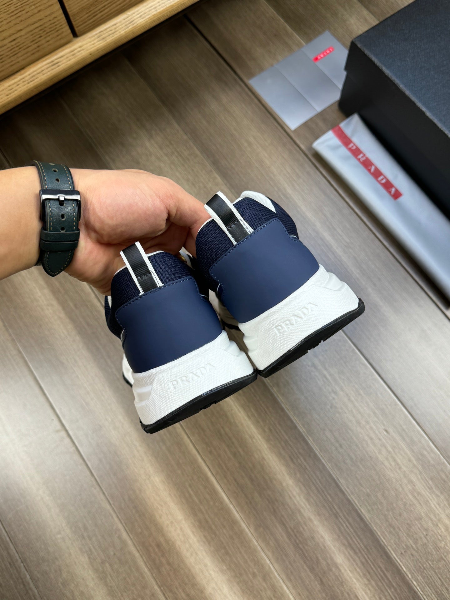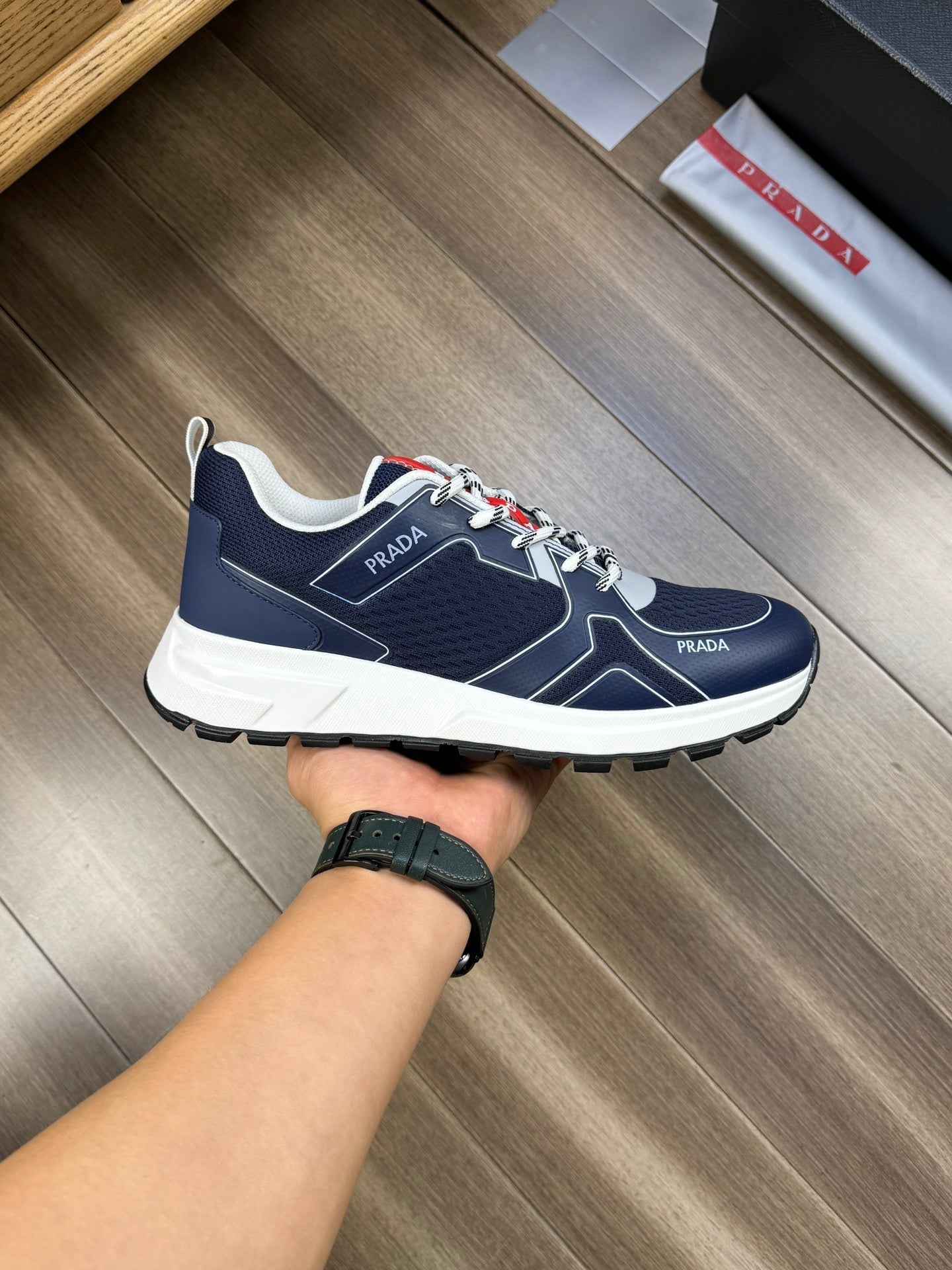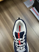 PRA SNEAKER NAVY BLUE NAPPA CALFSKIN AND FLYKNIT FABRIC