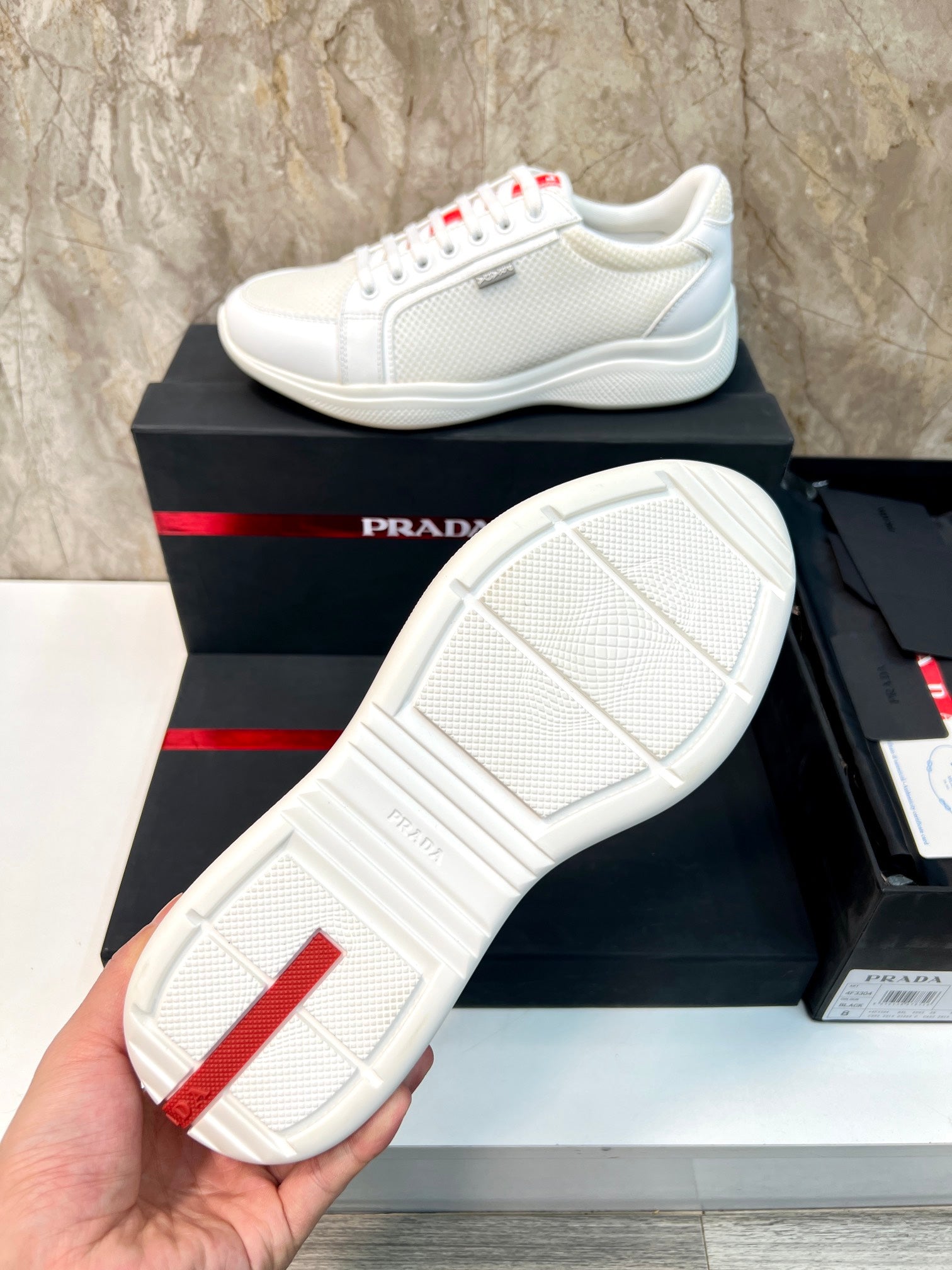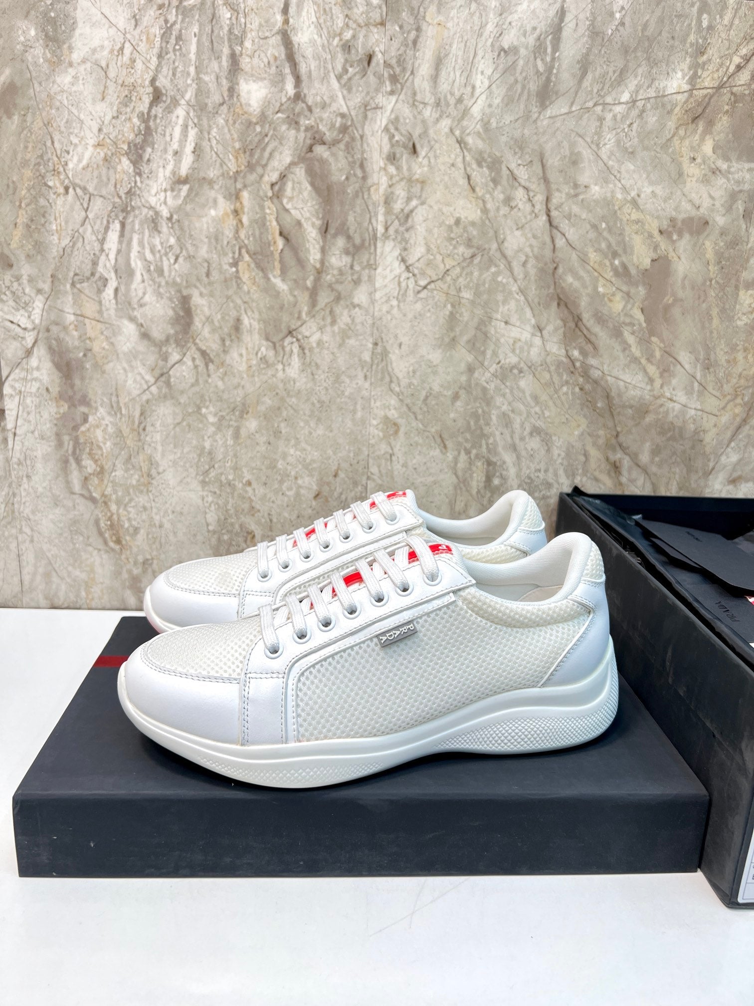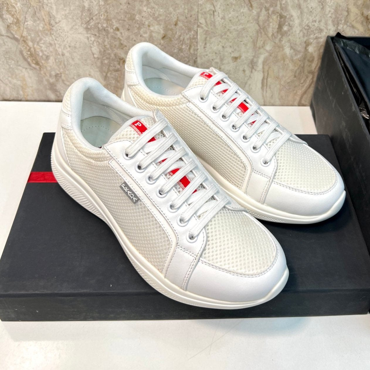 PRA SNEAKER WHITE CALFSKIN AND MESH FABRIC