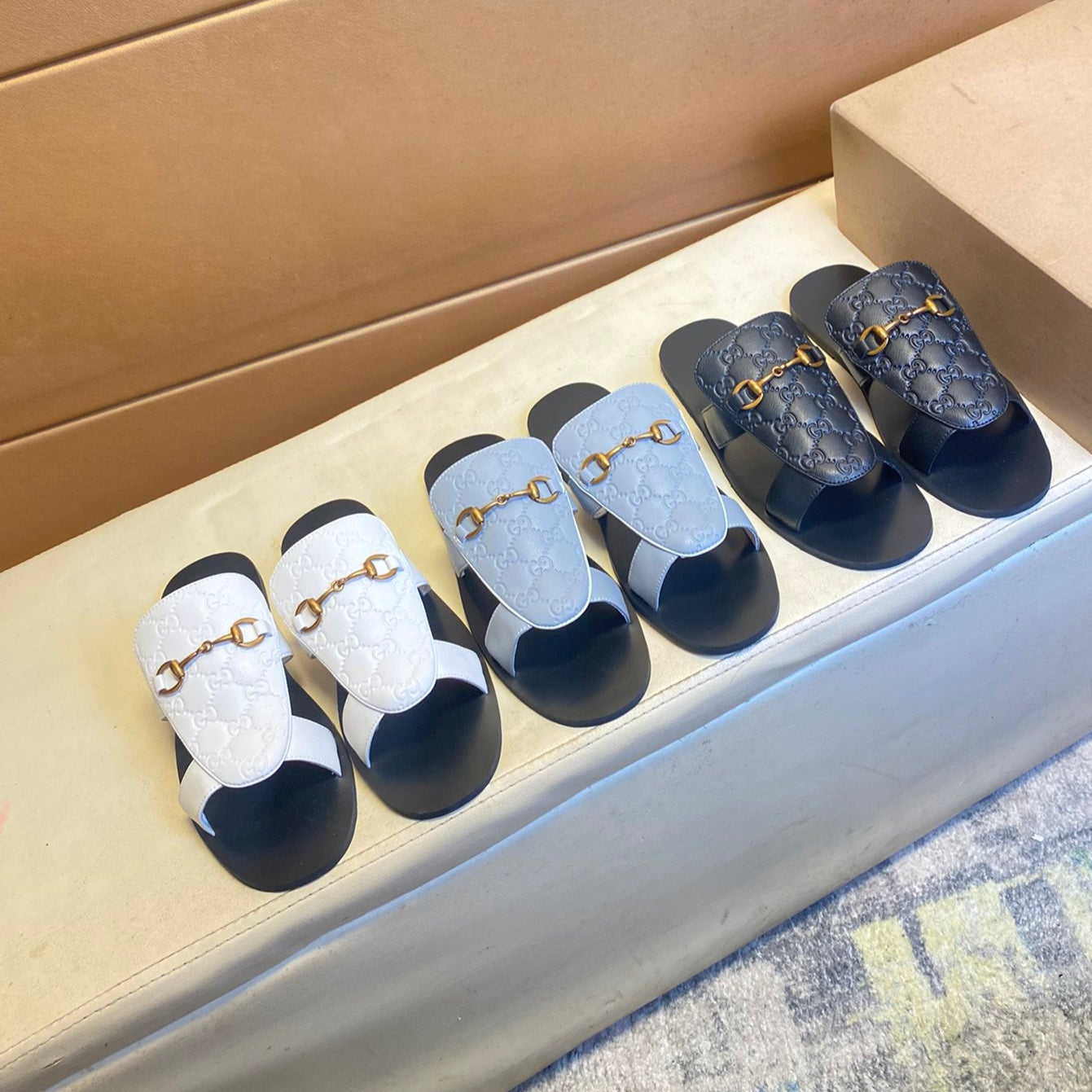 GG Men's Slide White Cowhide 709746