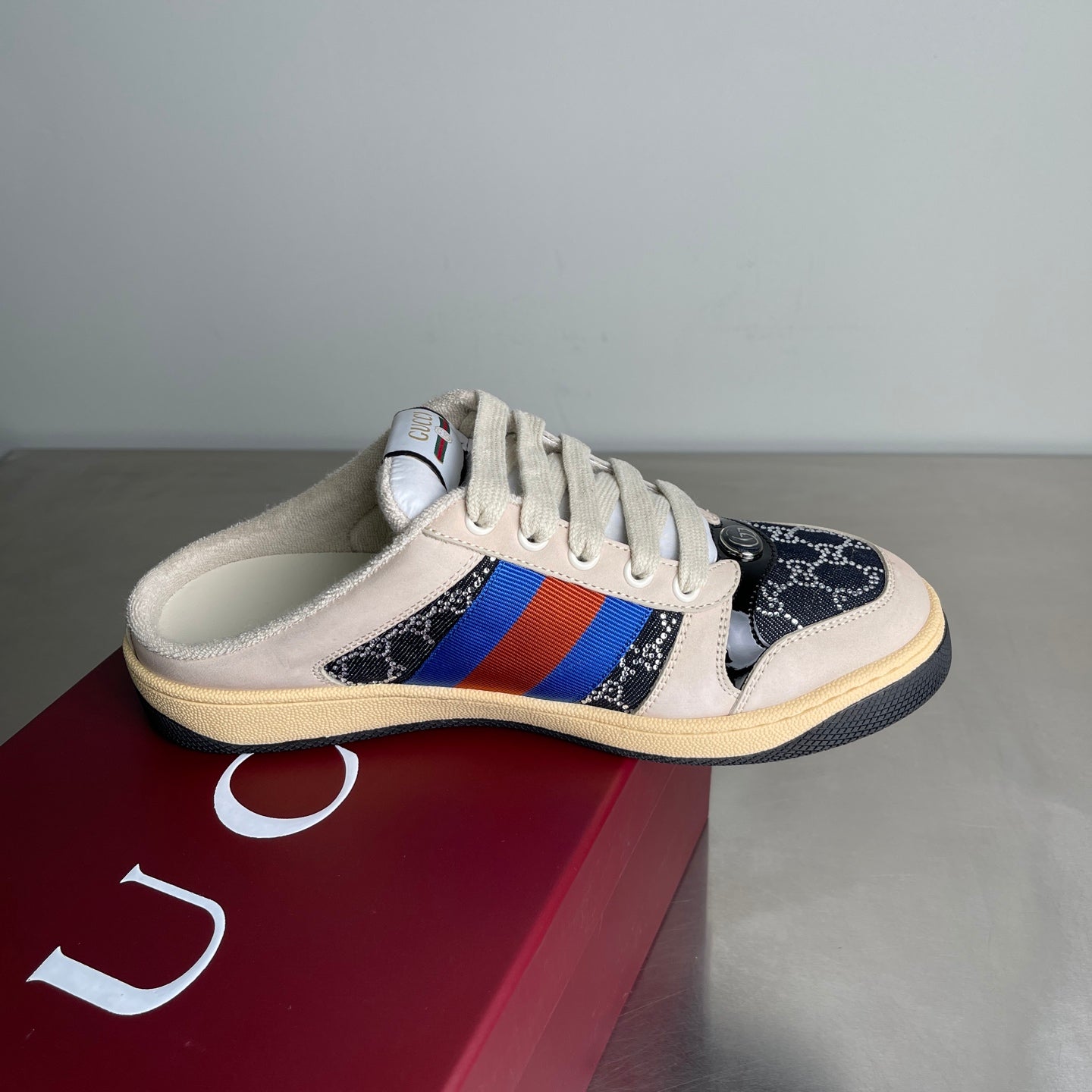 GG Men's Screener Mules Multicolor Suede Denim 722596