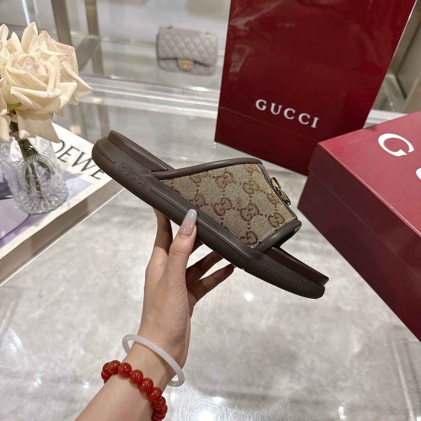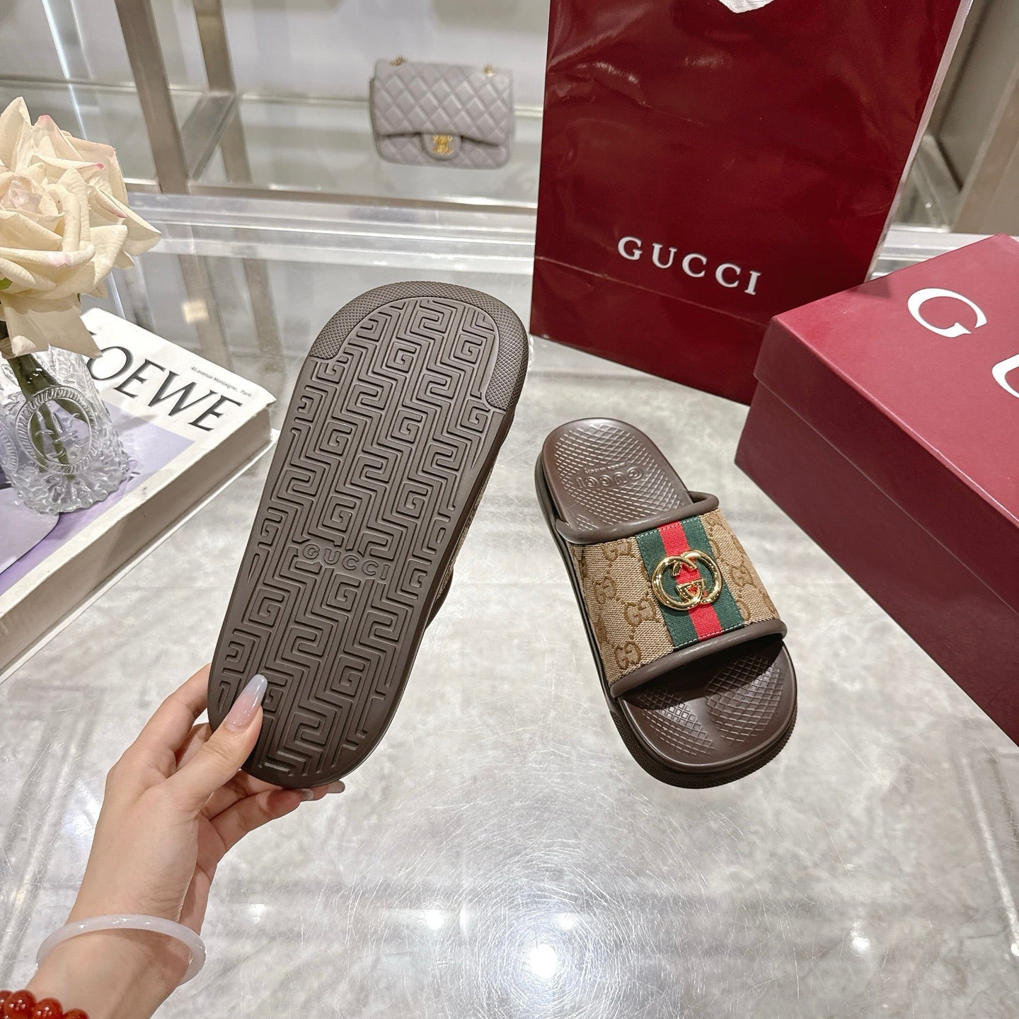 GG Men's 25 Slide Brown Canvas Rubber 720570