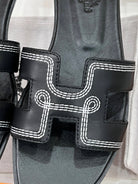 - Material: Sandal in calfskin with iconic "H" cut-out.