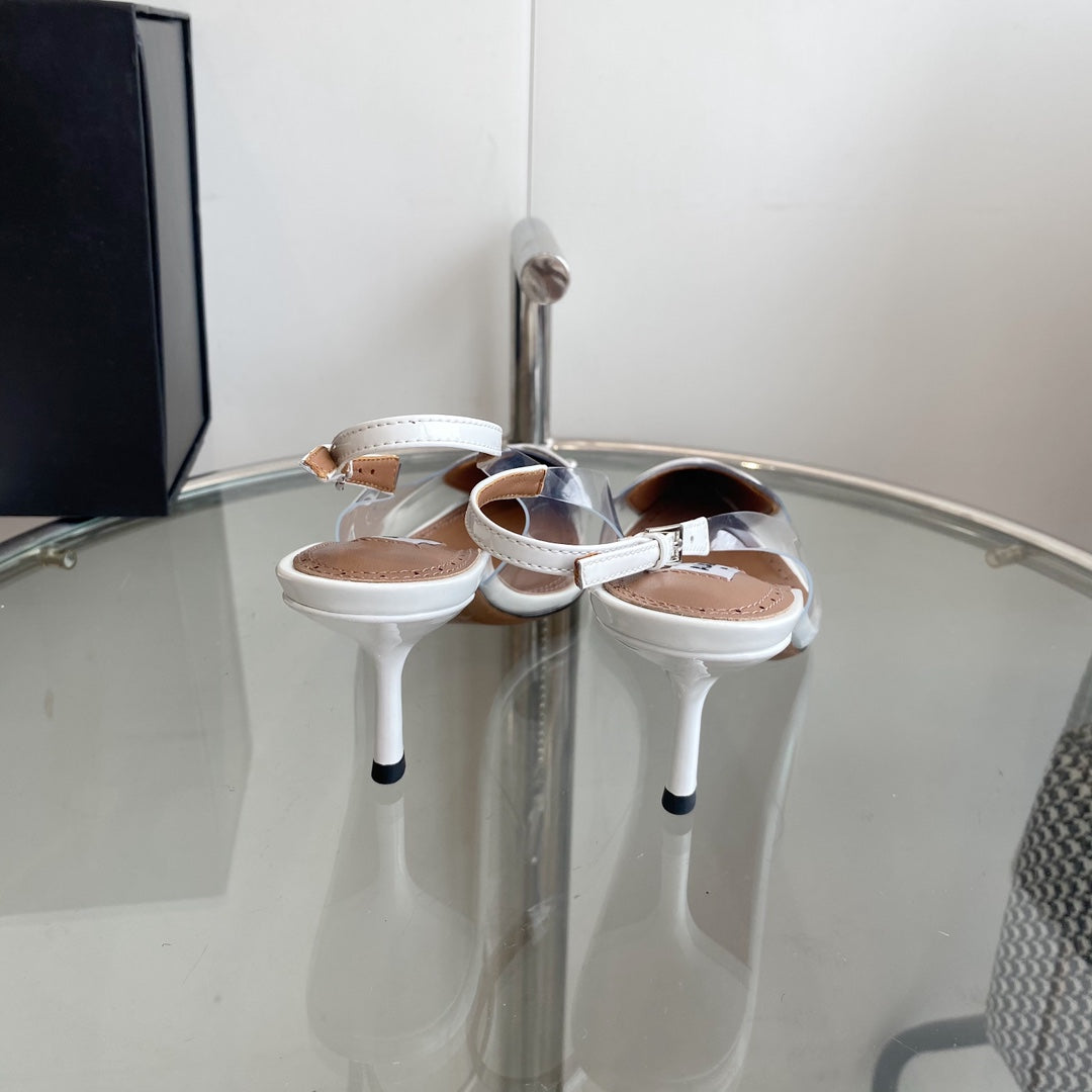 ALAIA HIGH 6 CM SLINGBACK IN WHITE PATENT CALFSKIN AND FILM