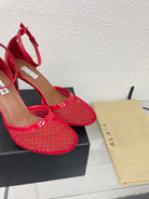 ALAIA HIGH FISHNET 9 CM PUMPS IN CHERRY RED MESH