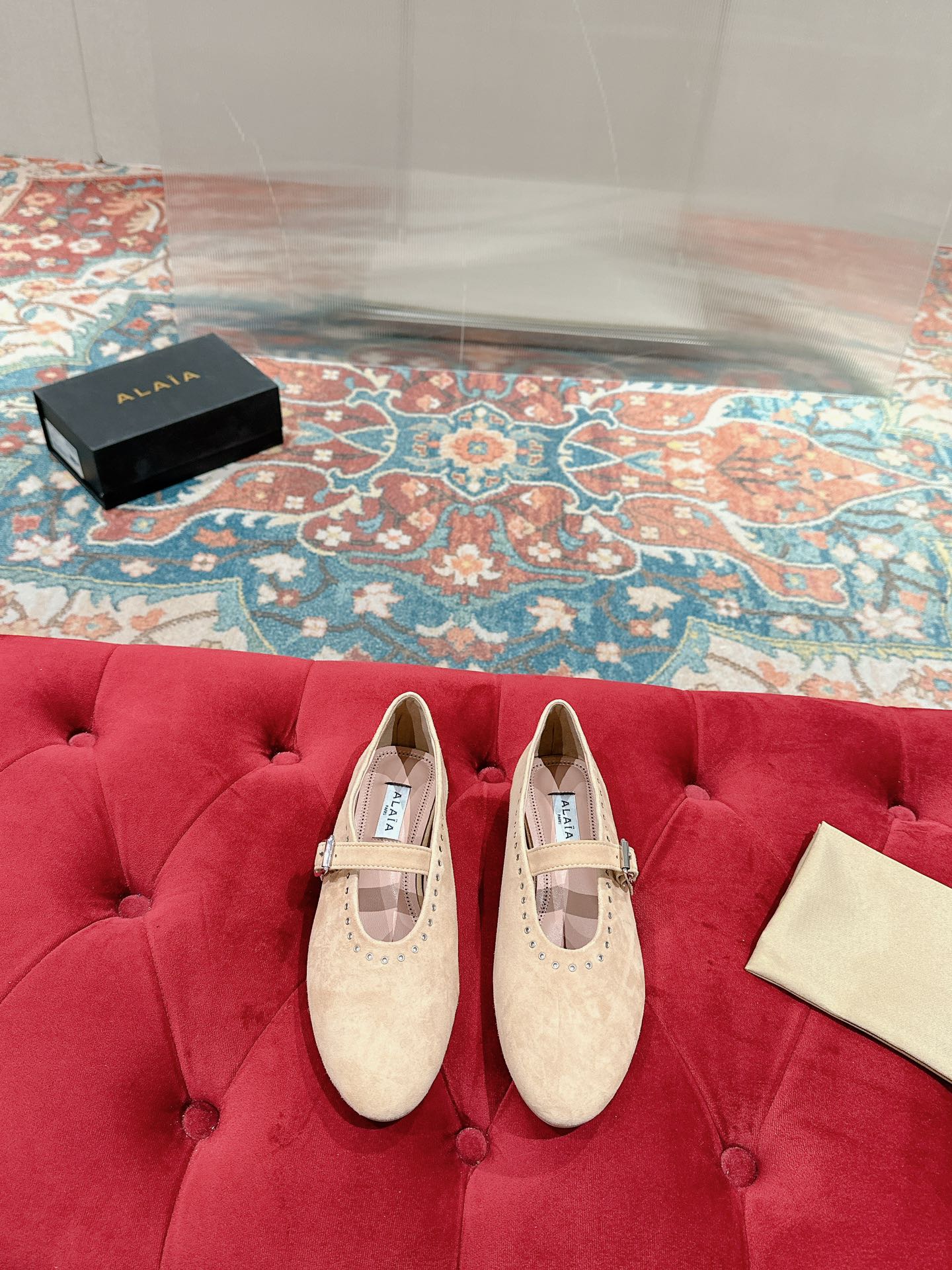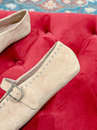 ALAIA MARY JANE IN BEIGE SUEDE WITH SILVER HARDWARE