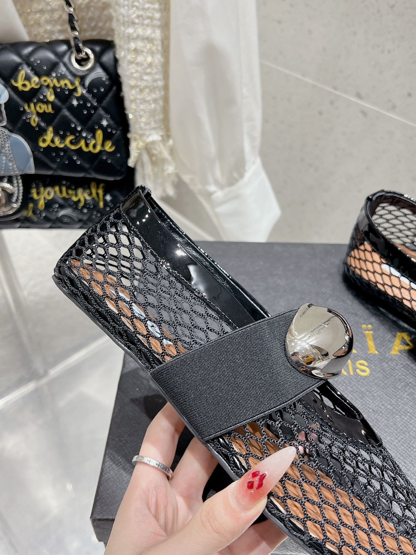 ALAIA MARY JANE SHOES IN BLACK MESH WITH BLACK - TONED HARDWARE
