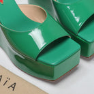 ALAIA PLATFORM WEDGE IN COOL GREEN LAMBSKIN WITH RED HEART