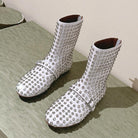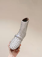 ALAIA SHORT BOOTS IN WHITE LAMBSKIN ATTACH RHINSTONES