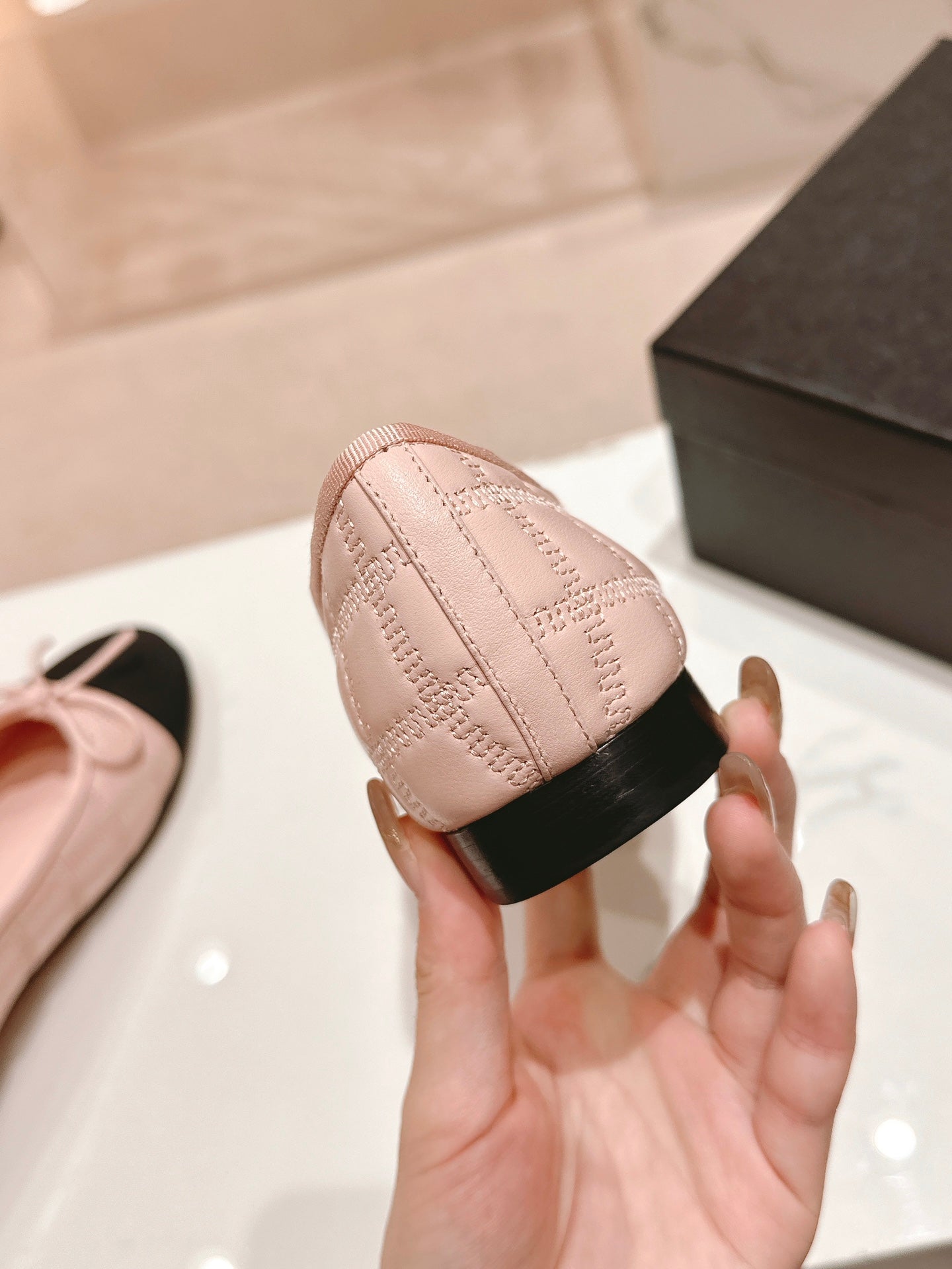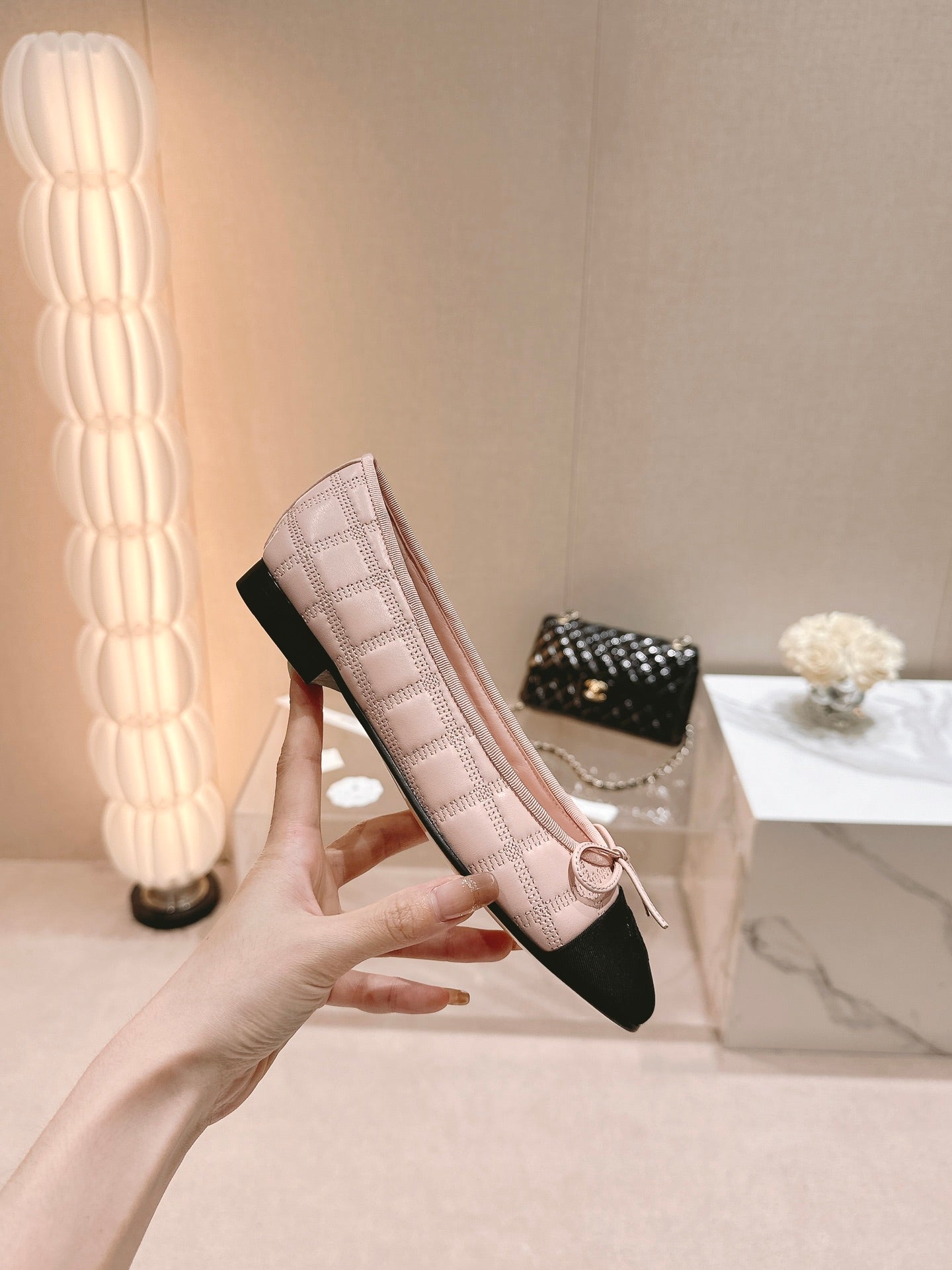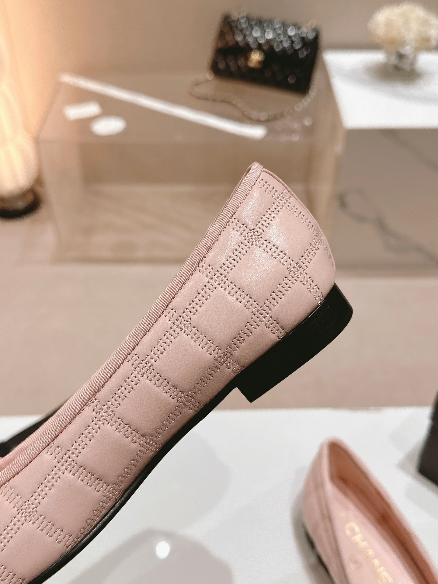 ballet flats pink lambskin embroidery grosgrain