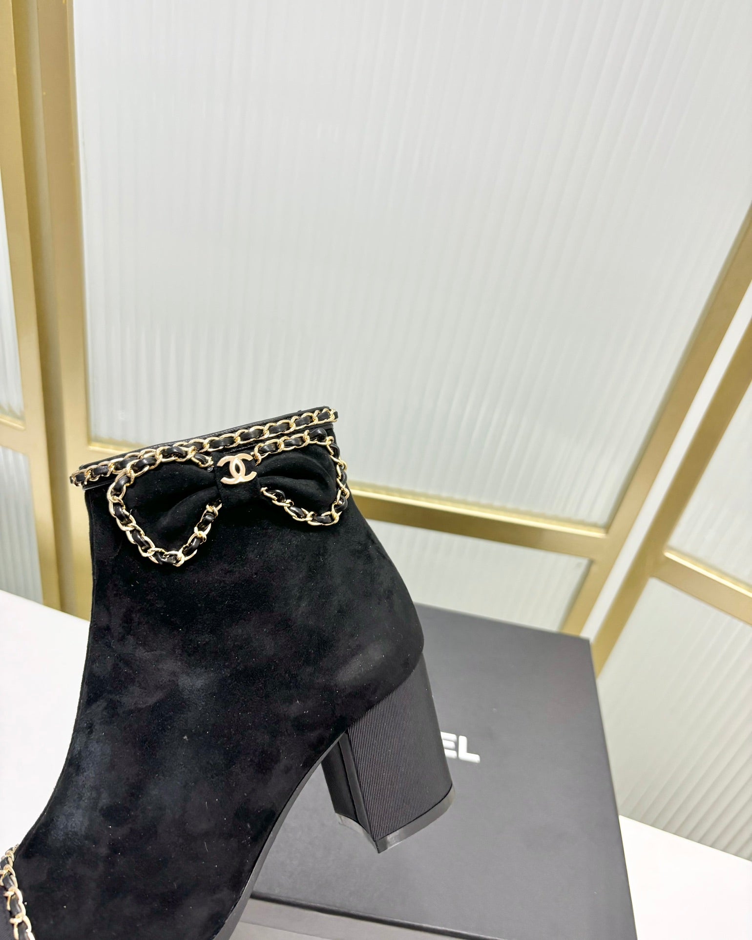 CC Ankle Boot 65 Black Suede Grosgrain Leather Strap