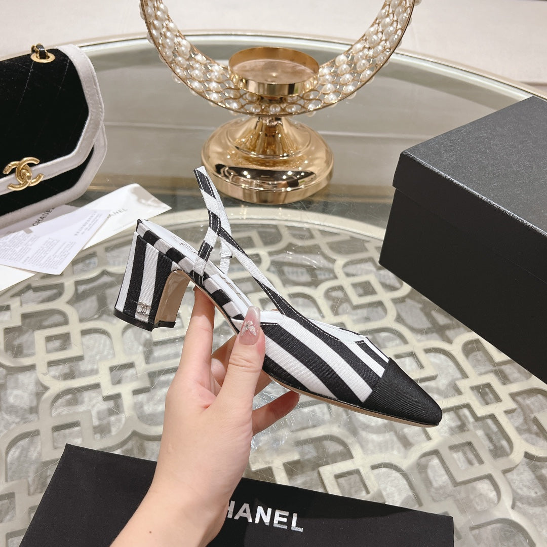 CC HIGH SLINGBACK IN WHITE MIX BLACK FABRIC