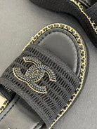 CC Mesh Hollow Chain Double C Thick-Soled Slippers 70mm Black 265651