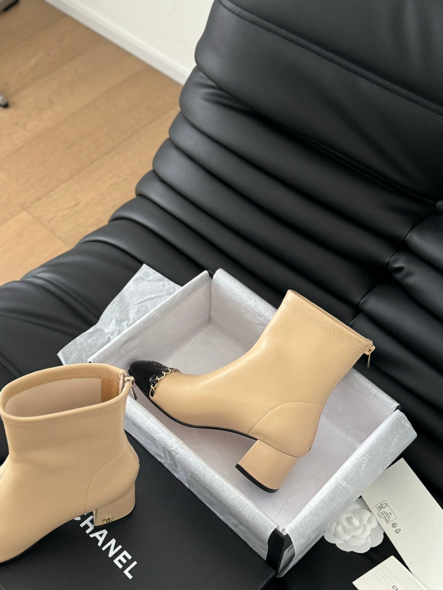 CC Ankle Boot Beige Calfskin Black Patent Calfskin