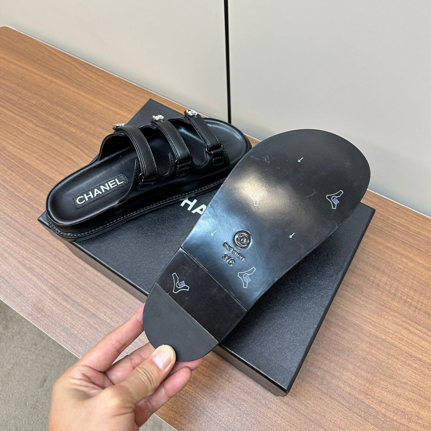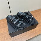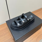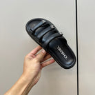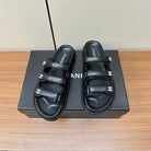 dad sandals black triple strap lambskin mules